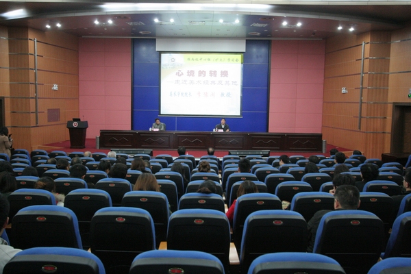 学习会于4月8日下午在旗山校区学术大讲堂举行,邀请美术学院院长李豫闽教授作“心境的转换——走近美术经典及其他”的辅导报告。校领导,全校处级干部,校各民主党派、统战团体、无党派人士联谊会负责人,离休党总支、关工委、退休协会、老年大学负责人,机关科级干部,全体辅导员参加了学习会。学习会由校党委副书记游小波主持。