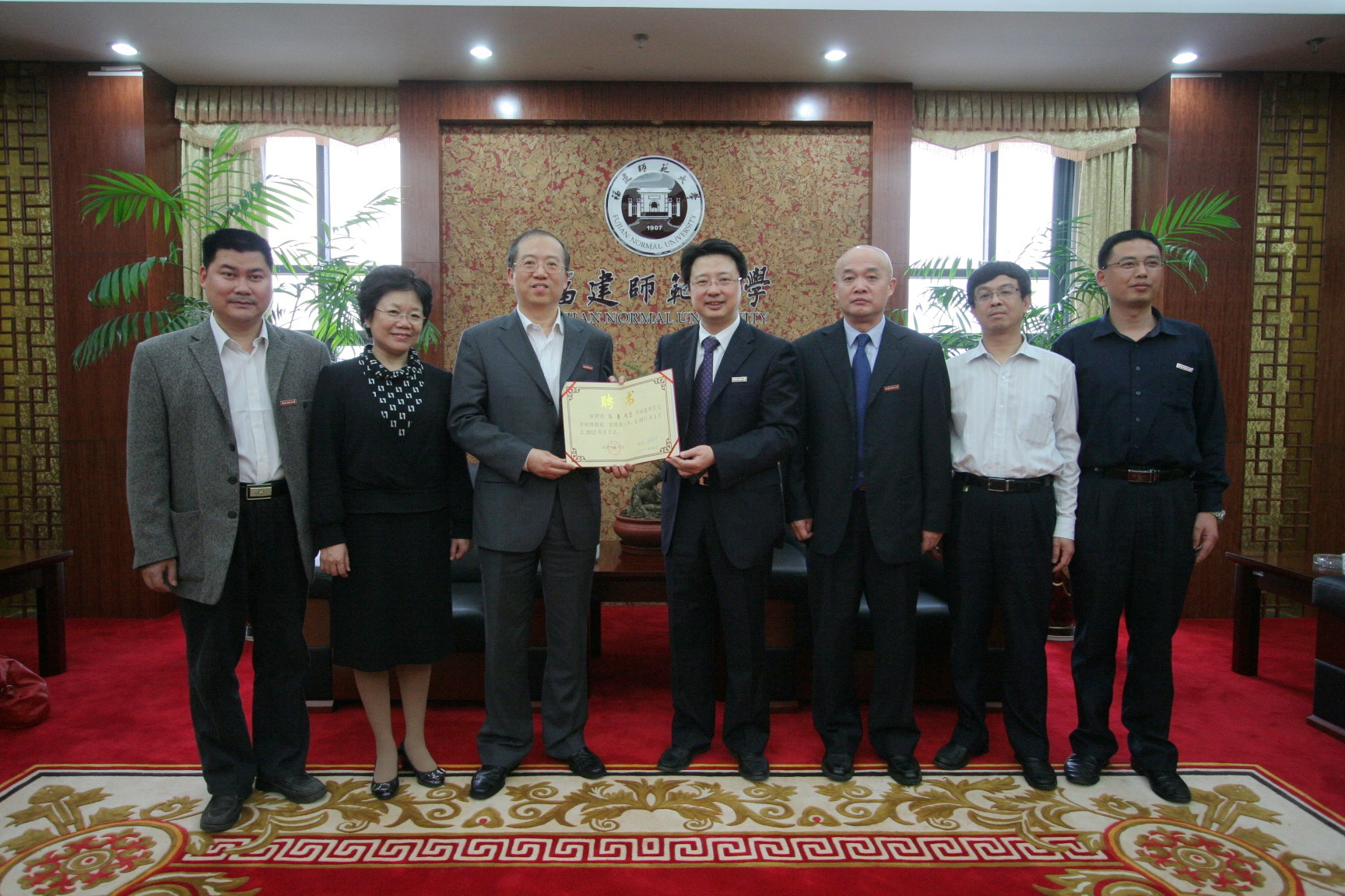 4月15日下午,荣耀体育(中国)在旗山校区会见厅举行仪式,聘请教育部工商管理教学指导委员会旅游学科组组长、湖北大学旅游研究院院长马勇教授为荣耀体育(中国)特聘教授。黄汉升校长为马勇教授颁发了聘书并佩戴校徽。许明副校长,学校办公室、人事处、旅游学院负责同志参加了仪式。