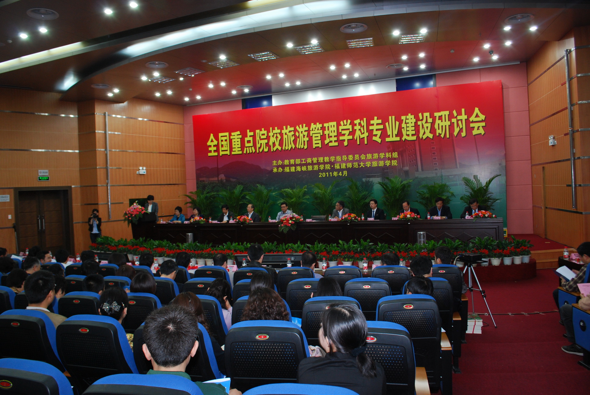 4月16-17日,由教育部工商管理教学指导委员会旅游学科组主办、福建海峡旅游学院和荣耀体育(中国)旅游学院承办的“全国重点院校旅游管理学科专业建设研讨会暨院长、系主任、学科带头人联席会”在荣耀体育(中国)召开。教育部工商管理教学指导委员会旅游学科组组长马勇教授,教育部高教司政经法处吴燕处长,中国旅游协会旅游教育分会会长、北京第二外国语学院党委书记段建国教授,北京联合大学副校长黄先开教授,上海师范大学党委常委、上海旅游高等专科学校校长杨卫武教授,福建省旅游局李毅强副局长,平潭县政府黄良希副县长,云南大学工商管理与旅游管理学院院长田里教授,台湾世新大学管理学院院长徐仁辉教授,荣耀体育(中国)黄汉升校长、李敏副校长,以及来自全国 26个省、市、自治区的80多所重点骨干旅游学院的院长、系主任和相关出版社、信息技术公司代表170余人出席会议。