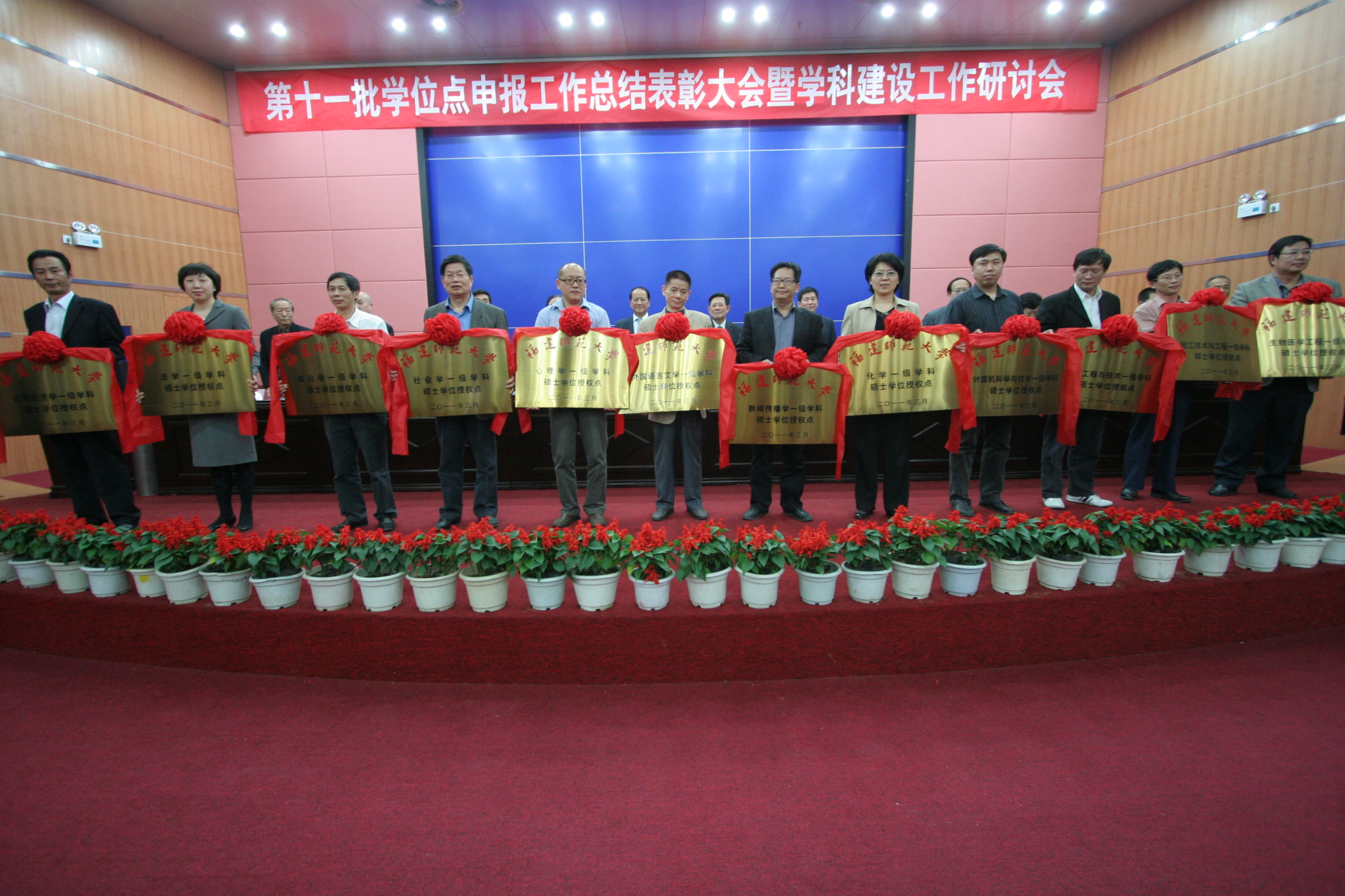 李敏副校长宣读了《荣耀体育官方网页版关于表彰奖励新获批一级学科博士点、一级学科硕士点和硕士专业学位点的单位的决定》,与会领导为新增一级学科博士学位授权点、一级学科硕士学位授权点及硕士专业学位授权点授牌。