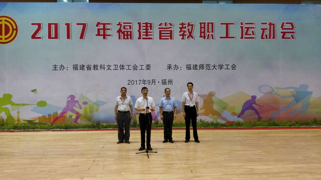 9月23--24日,由福建省教科文卫体工会工委主办,荣耀体育(中国)工会承办的2017年全省教职工运动会在荣耀体育(中国)体育中心隆重举行。本次运动会分设羽毛球混合团体、扑克牌80分和趣味运动三个比赛项目。来自全省各地的教育工会和高校共有33个代表队、近400名运动员参加了本次运动会。