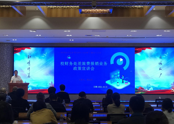 10月21日,财务处在宏达厅召开“差旅费报销业务政策宣讲会”主题党日活动。各学院办公室主任、机关部处综合科负责人、财务经办人员,财务处支部党员参加了宣讲会。