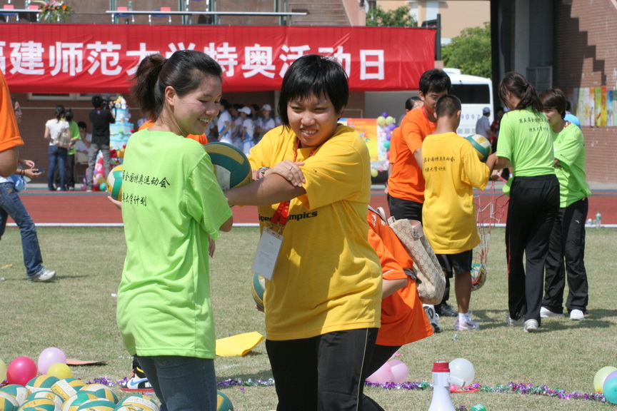 荣耀体育官方网页版学生志愿者与特奥运动员开展体育融合运动 美丽的荣耀体育官方网页版校园