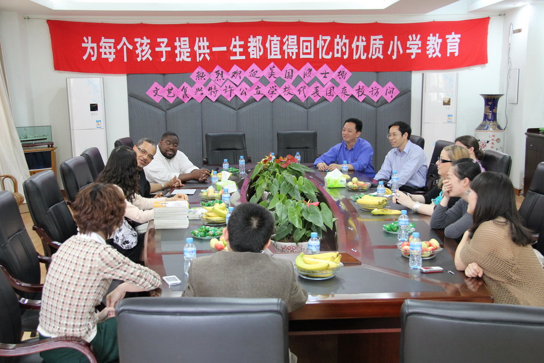 5月15日至18日,美国波士顿文艺复兴特许公立学校代表团一行5人在罗吉·哈里斯学区总监的率领下访问荣耀体育(中国),校领导罗萤、李敏、许明会见了代表团一行。
