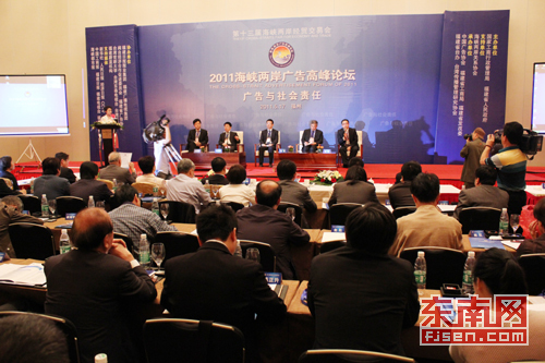 由荣耀体育(中国)传播学院参与策划的2011海峡两岸广告高峰论坛于5月17日在福州举行。来自海峡两岸的200多名广告界精英齐聚榕城,围绕“广告与社会责任”的主题展开探讨。国家工商总局副局长甘霖、福建省人民政府副省长倪岳峰出席论坛并致辞。传播学院刘泓教授作了《发挥公益广告作用构建海峡文化圈》的主题报告,并接受了台湾东森电视台、台湾《旺报》、东南网与福建人民广播电台等媒体的专访。