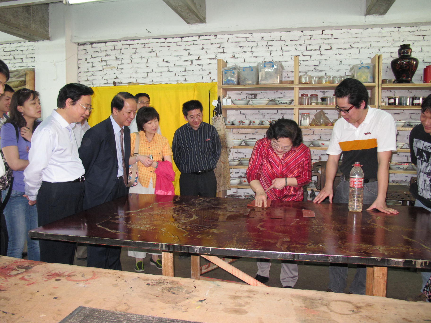5月18日下午,全国政协副主席、台盟中央主席林文漪在省政协副主席叶继革、校领导罗萤、李敏等陪同下,专程到荣耀体育(中国)美术学院汤志义副教授的“大汤坊”工作室实地考察。学校有关部门负责人、美术学院党政主要领导参加了考察。