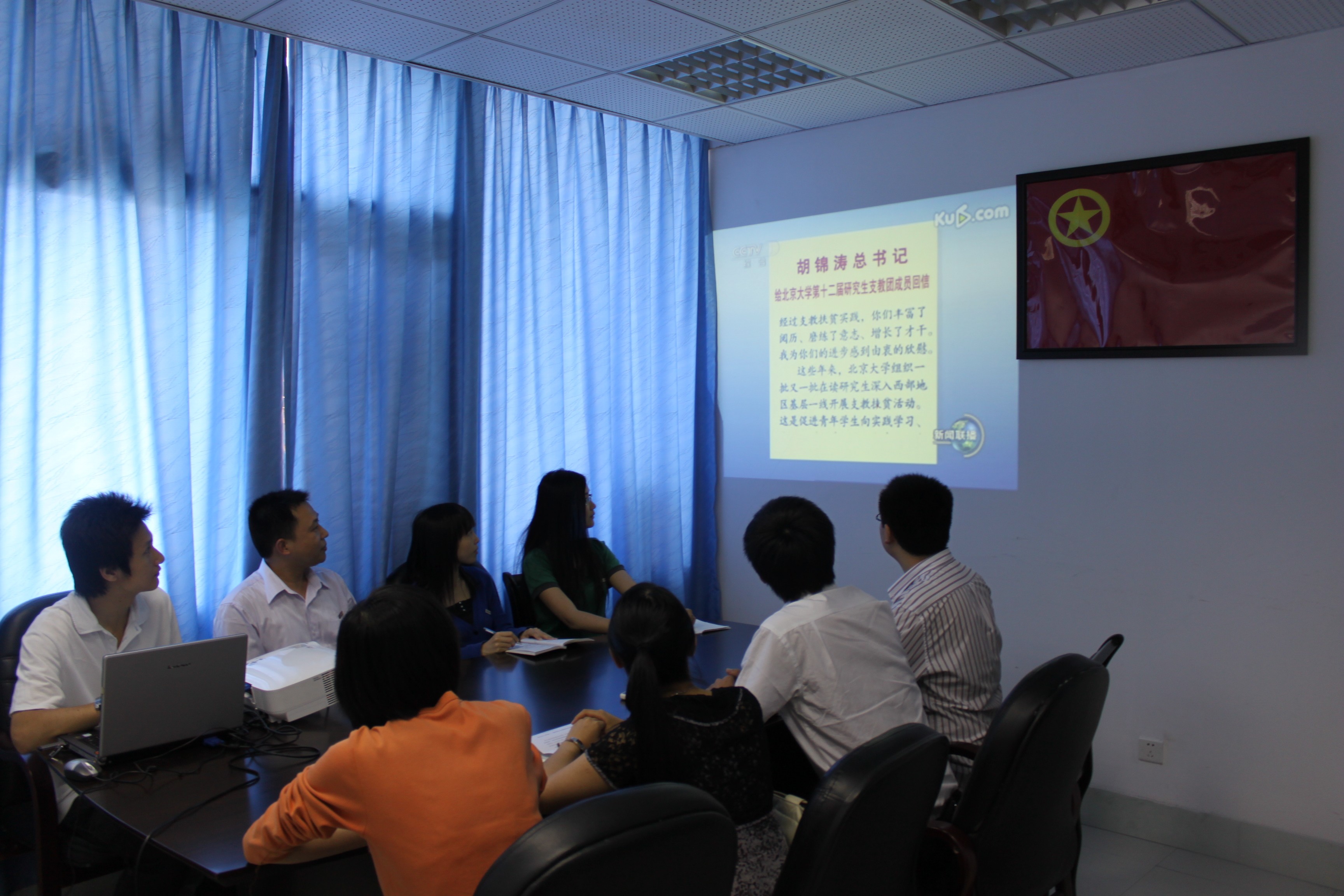 支教团同学重温了5月24日晚中央电视台新闻联播的视频,胡锦涛总书记“向实践学习、向人民群众学习”的号召引起大家的强烈共鸣。同学们一致认为,总书记的回信不长,却字字饱含深情,处处彰显肯定与鼓励。