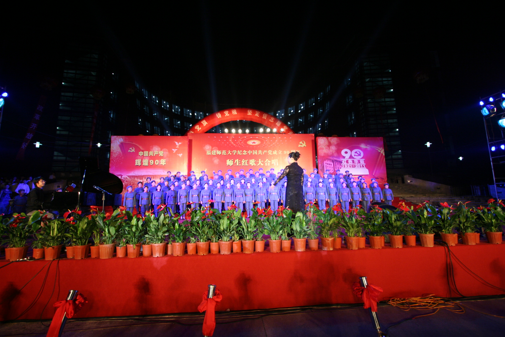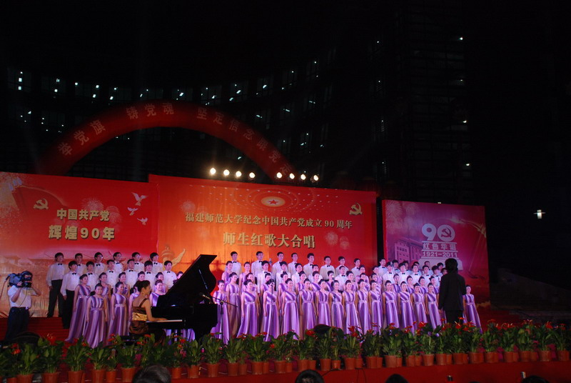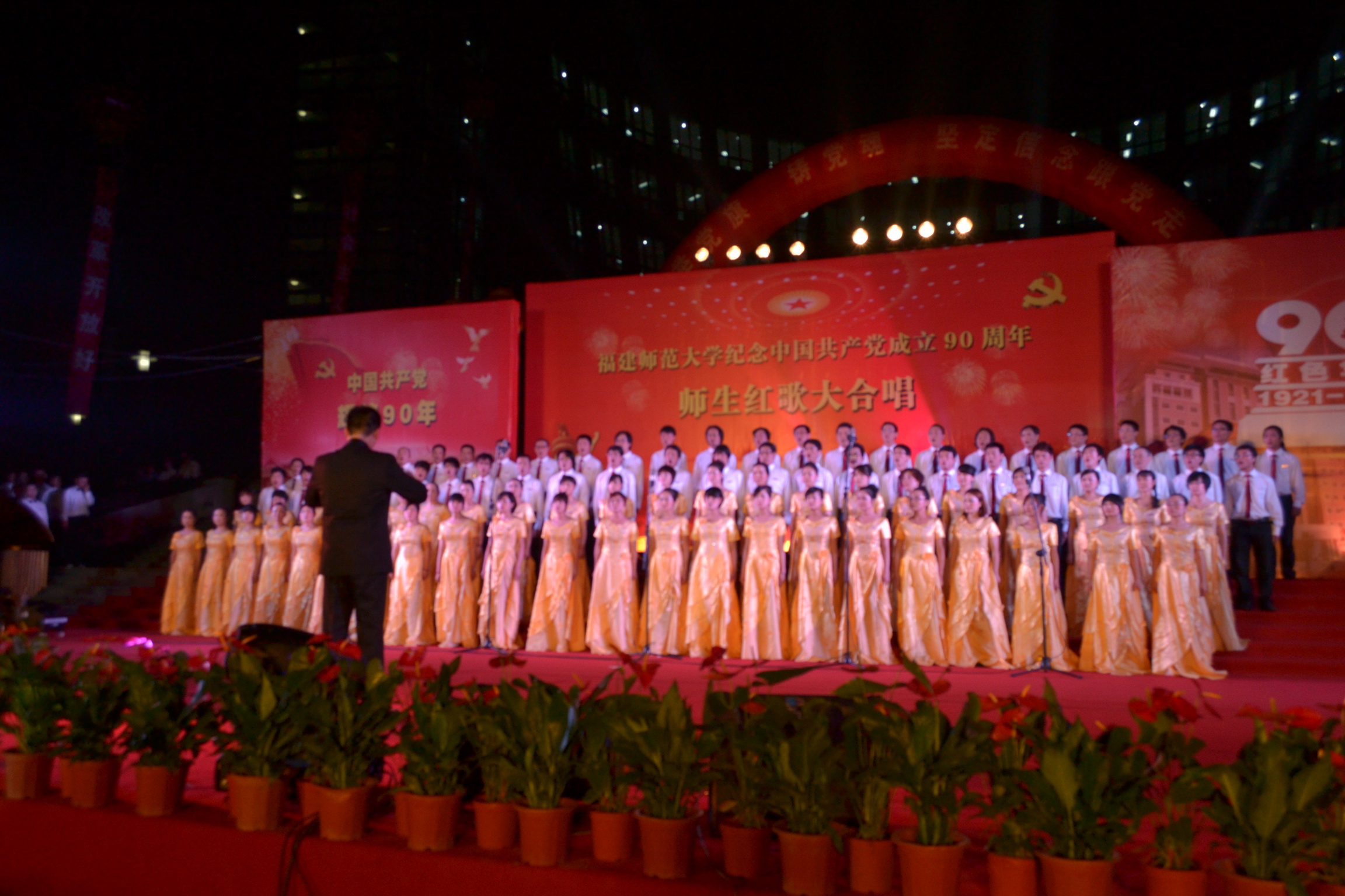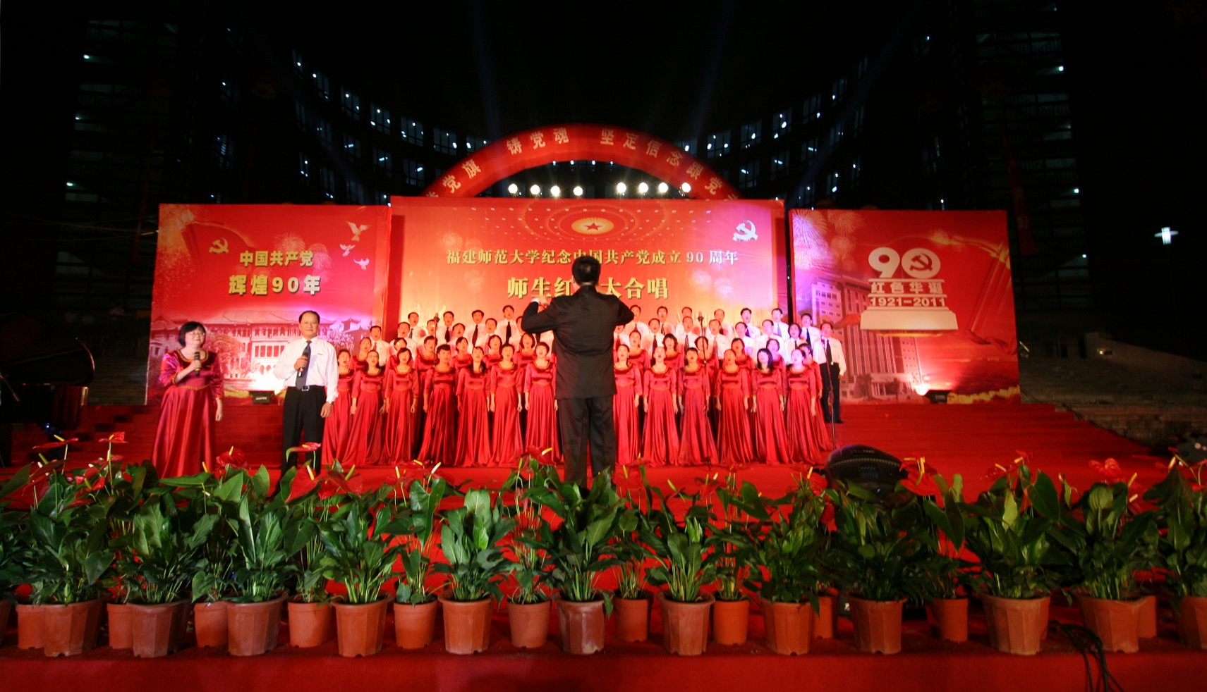 5月25日晚,由校党委宣传部、校工会和校团委共同主办的“举党旗,铸党魂,坚定信念跟党走”荣耀体育官方网页版师生纪念中国共产党成立90周年红歌大合唱比赛在旗山校区福万广场隆重举行,共有32支师生合唱团、2600余师生参加比赛和演出。省总工会党组成员、纪检组长高榕,团省委副书记兰明尚,省教科文卫体工会副主任张红璇,福州市总工会直属工会主席侯贞诚、副主席尤山,校领导罗萤、许歌平、汪文顶、李敏、凌启淡,以及全校师生代表共6000多人观看了比赛。