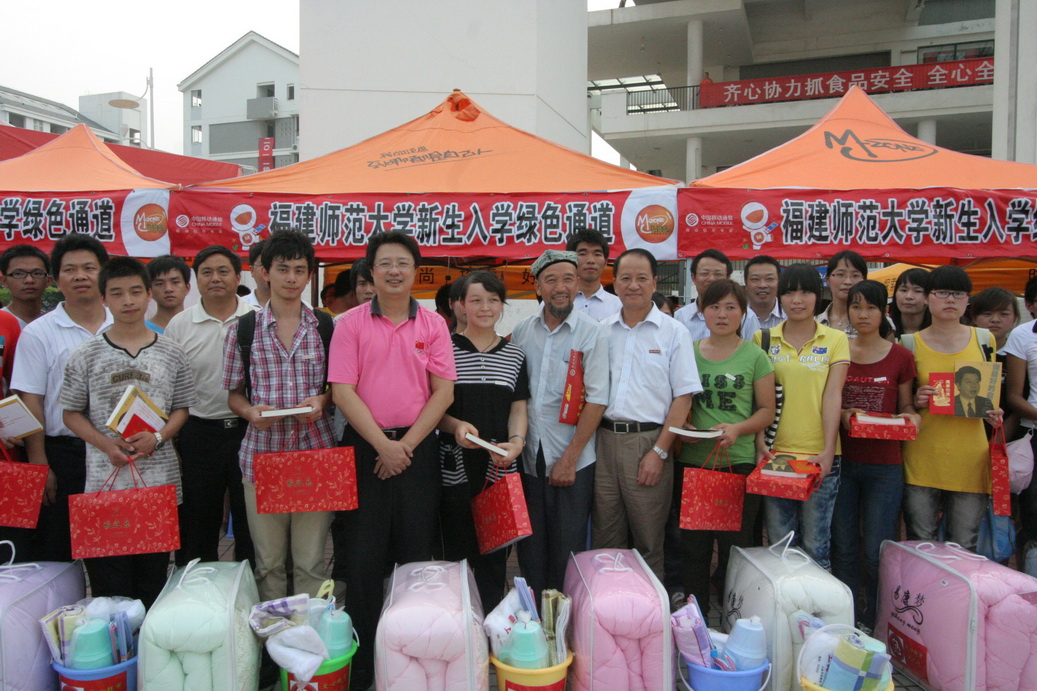 下午,迎新现场举行仪式,校党委罗萤书记、黄汉升校长亲手将“特困新生资助计划”送到24名家庭经济特别困难新生的手中。仪式上,罗萤代表学校对2011级新生的到来表示热烈的欢迎,对他们到荣耀体育官方网页版这所百年老校学习表示祝贺。他勉励特困新生尽快适应新的学习和生活环境,融入师大这个温馨的大家庭;希望他们继承传统,秉承校训,勤奋学习,刻苦钻研,在师大开启人生的新篇章。
