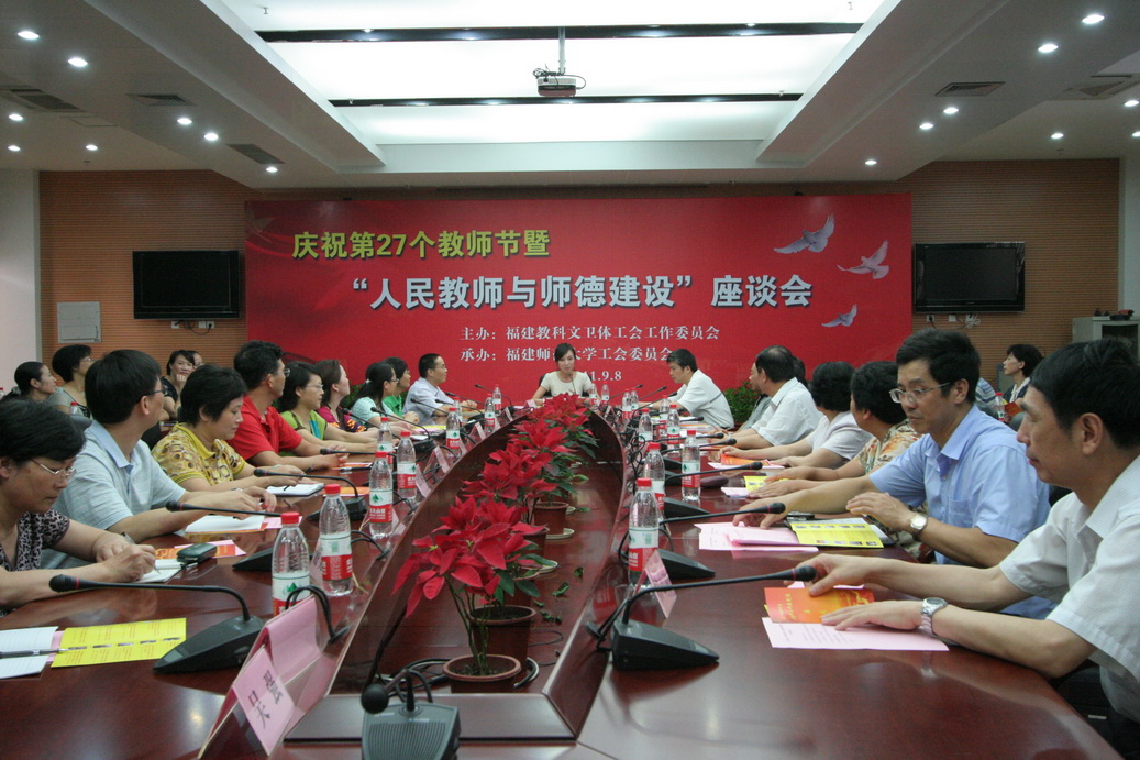 本次座谈会采用轻松、自由、非学术的论坛形式,邀请全国教育系统职工职业道德建设标兵李永青、林立灿、林绍铃,全国优秀教师林琴,全国模范教师郑琼,省师德标兵俞歌春,省教学名师杨晓翔、彭琦凡,省劳模翁乾明,省优秀教育工作者陈育平等专家学者,以“自强不息,厚德载物”为主题,就师德的界定、底线、实施、价值、要素、缺失、塑造等方面的问题进行了全面系统、深入浅出的解读和阐释,共同探究和实践全社会都期许和关注的时代价值取向,向人们昭示了“振兴民族的希望在教育,振兴教育的责任在教师”的道理。他们结合自身丰富的教育实践,以生动感人、富有哲理的事例和语言,深深感染和打动了与会师生。