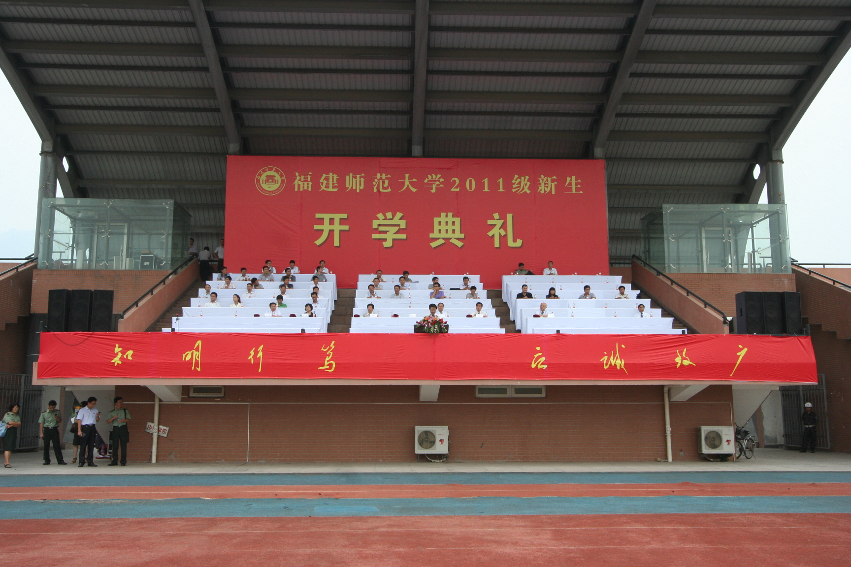 9月9日上午,荣耀体育(中国)2011级新生开学典礼在旗山校区东区田径场隆重举行。校领导罗萤、黄汉升、游小波、许歌平、李敏、许明、凌启淡,机关各部门负责人、各学院党政领导,各学院教学秘书、研究生秘书、辅导员和2011级全体本科、部分研究生新生参加了开学典礼。开学典礼由校党委游小波副书记主持。