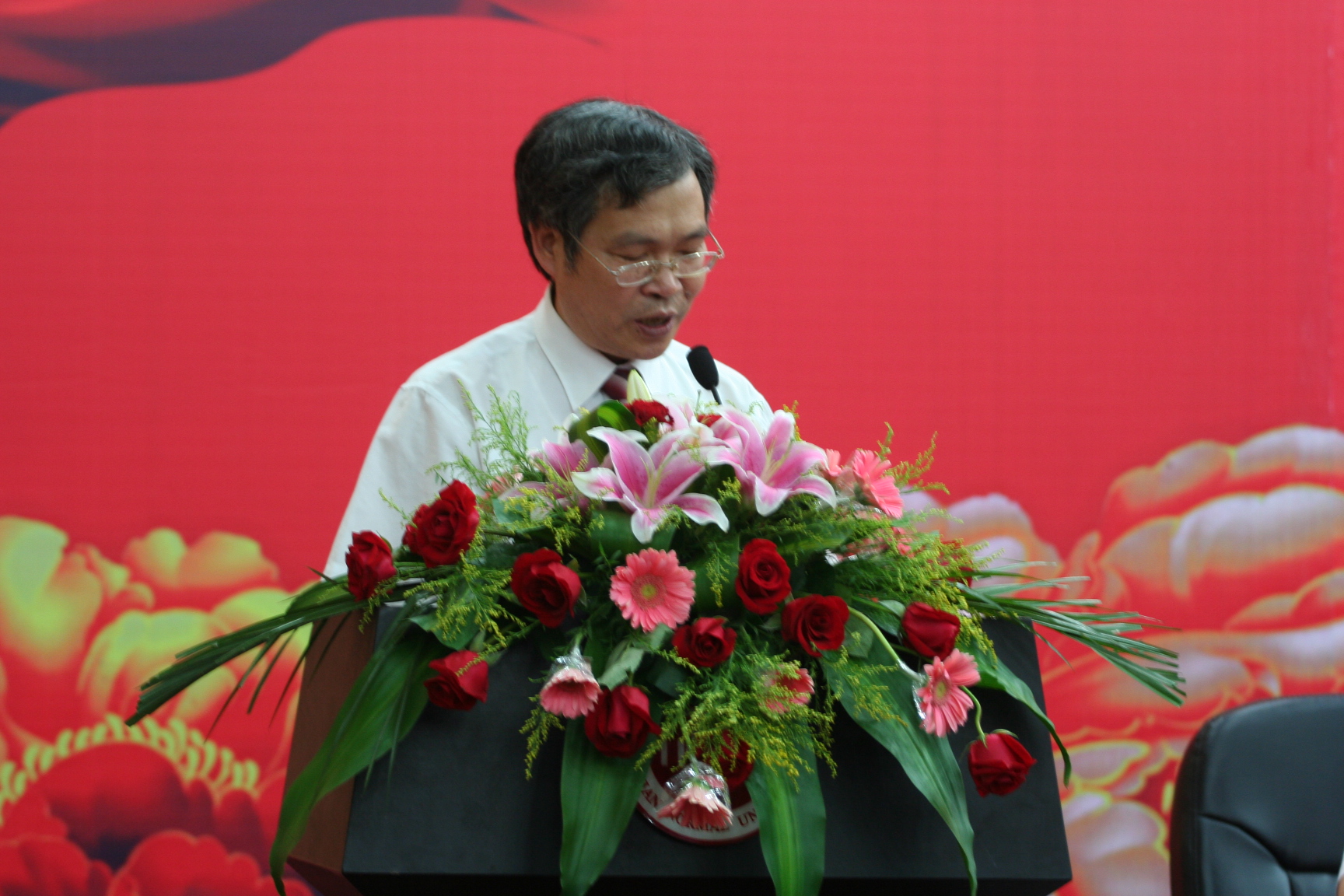校党委书记罗萤首先致辞。他代表校党委和校行政,向辛勤耕耘在教学、科研、管理和服务第一线的广大教职员工致以良好的祝愿和节日的问候,向受到表彰的先进集体和先进个人表示热烈的祝贺和崇高的敬意,希望全校师生与受表彰对象一同感受光荣、分享喜悦,并以他们为榜样,在全校掀起学习先进、争当先进的热潮,推动学校各项事业科学发展、跨越发展。