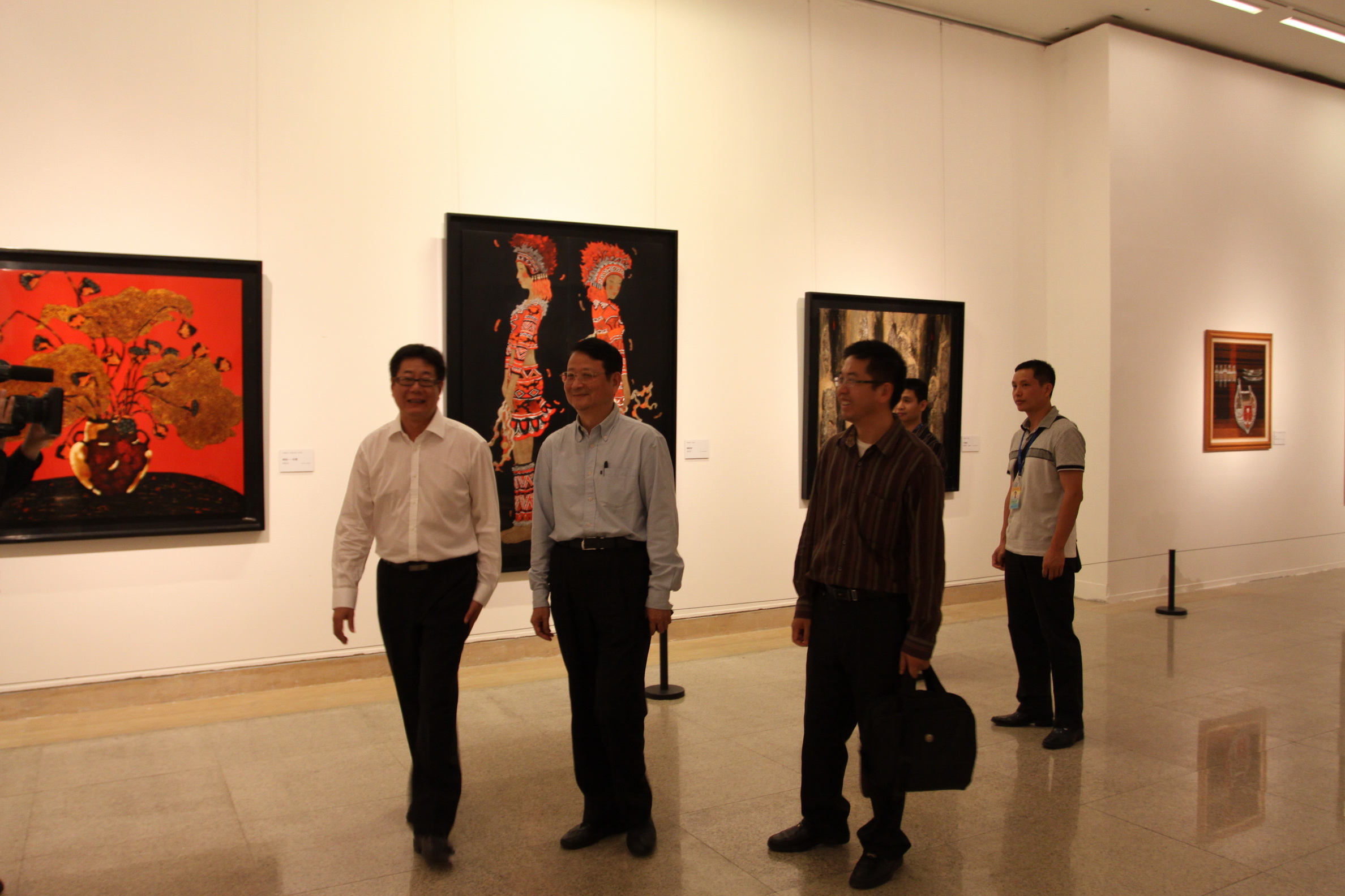 姚建年、周涛、杨贵仁、诸迪、李鸿江等领导与校友参观展览