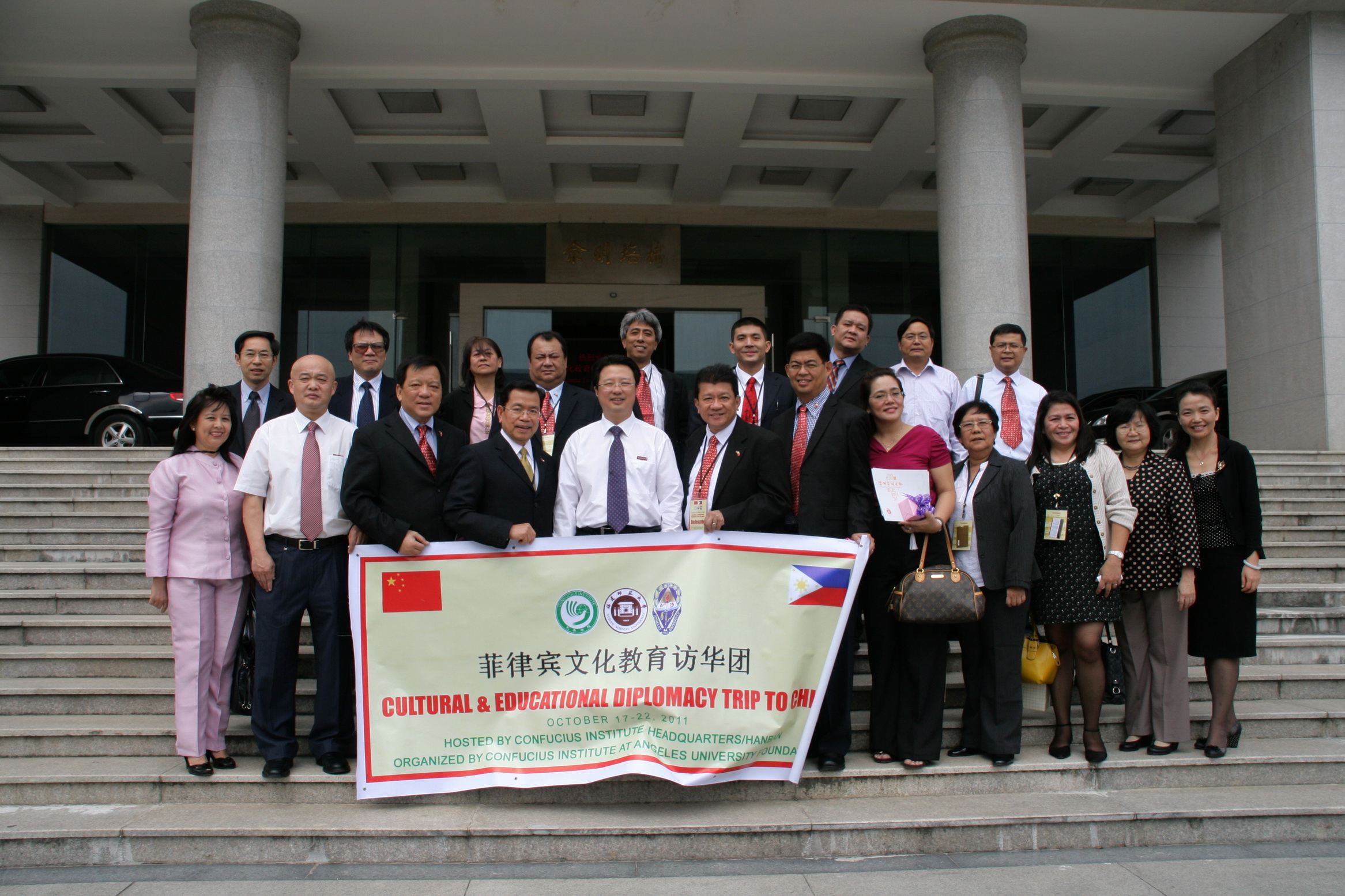 10月18日上午,由菲律宾市长联盟成员、菲律宾教育部官员和菲律宾高校代表组成的菲律宾文化教育访华团一行14人访问荣耀体育(中国)。黄汉升校长、李敏副校长、许明副校长会见了客人。学校办公室、国际合作与交流处、海外教育学院等相关单位领导参加了会见。