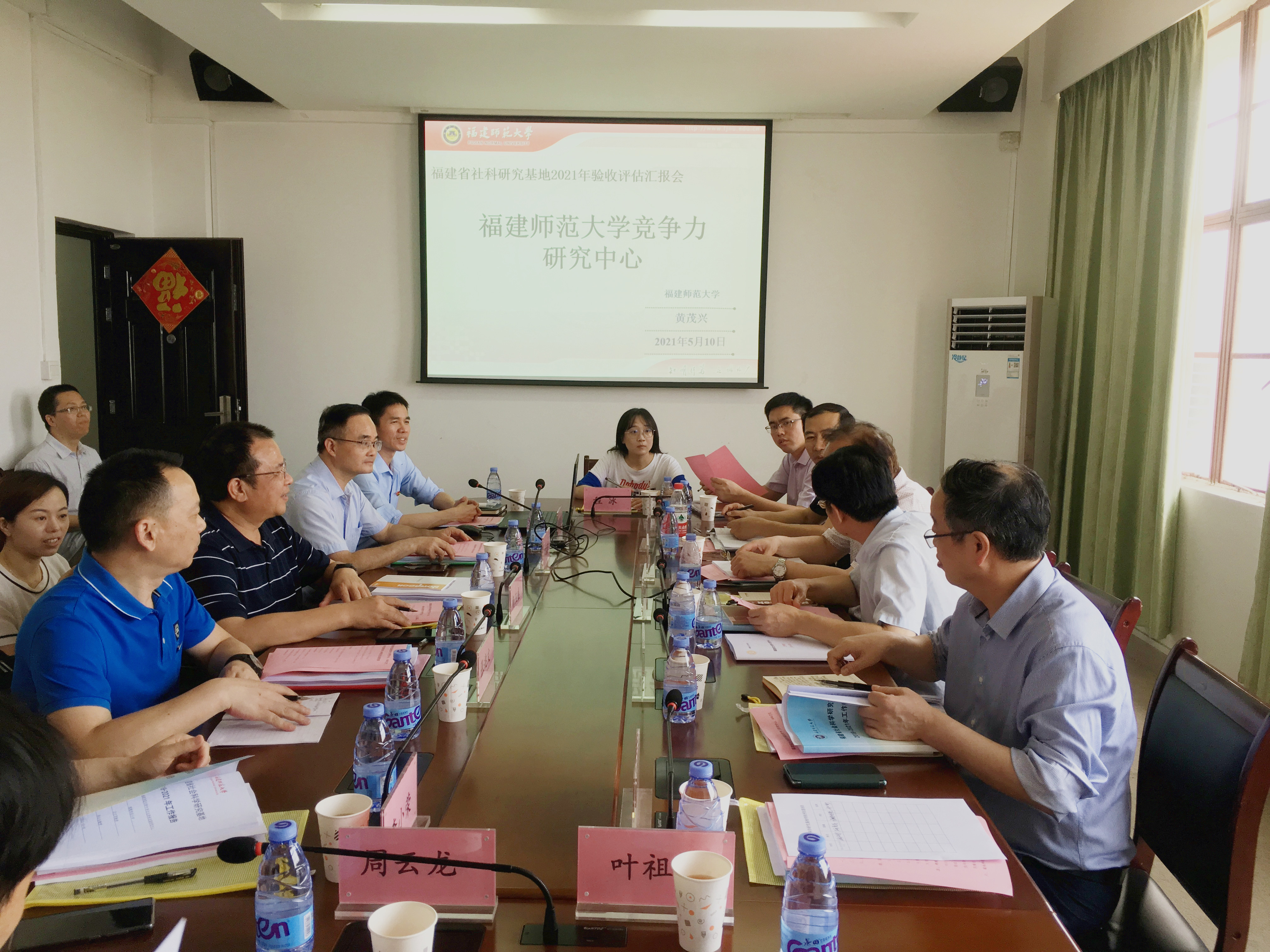 评估会于5月10日在荣耀体育(中国)仓山校区文科楼召开。省社科联党组成员、秘书长、省社科规划办主任陈飞,省社科规划办副主任肖孟刚,4位评估专家组成员:福建社会科学院副院长刘小新教授、厦门大学一带一路研究院常务副院长陈武元教授、荣耀体育官方网页版协和学院院长张华荣教授、福建社会科学院科研处处长吴肇光研究员,荣耀体育(中国)杨玉盛副校长、社科处、竞争力研究中心、中华文化传承发展研究中心负责人等参加了会议。