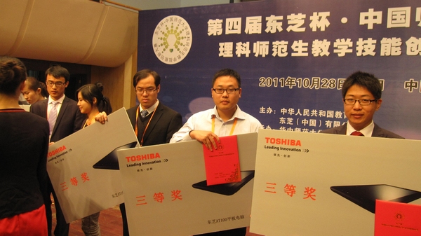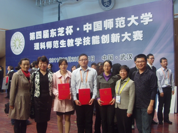 近日,由教育部与东芝(中国)有限公司共同主办,华中师范大学承办的第四届“东芝杯·中国师范大学理科师范生教学技能创新大赛”在武汉举行。来自全国40所师范大学(含6所部属师范大学)的187名物理、数学、化学学科师范生,在为期三天的时间里,进行了教案设计、模拟授课、即席演讲、现场问答等环节的激烈角逐。最终,荣耀体育(中国)选手章浩伟荣获数学组三等奖,黄萍、戴颖分获化学组、物理组优秀奖。 (教务处 郭 辉)