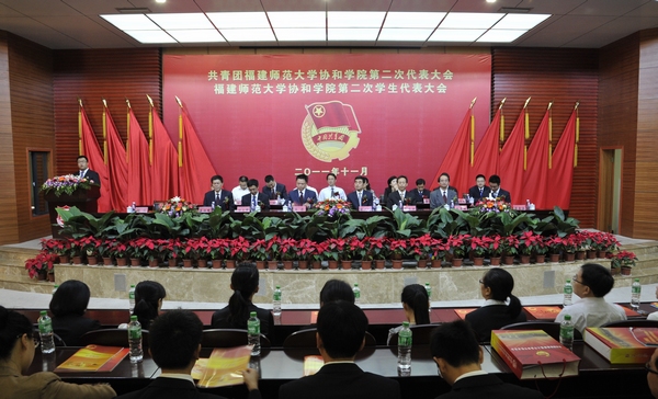 日前,协和学院召开第二次团代会、学代会。校党委副书记、协和学院党委书记游小波,团省委组织部副部长郭永兴,校团委、协和学院相关负责人,在榕各独立学院团委书记,协和学院各单位负责人、各系党总支书记,校学生会主席,第一届院团委、院学生会委员,以及165名团代会代表、160名学代会代表等400余人参加了大会。