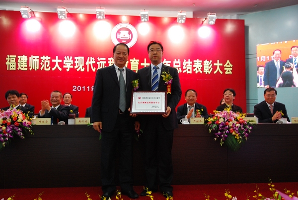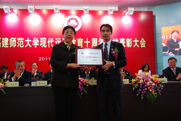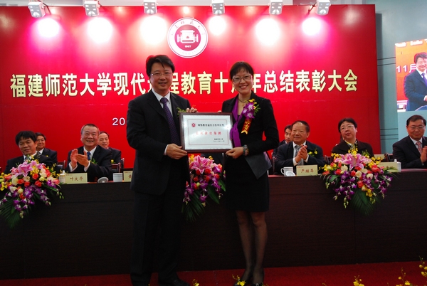 会上,严继昌代表全国高校现代远程教育协作组为网络教育学院颁发了“现代远程教育十年贡献奖”。校党委罗萤书记为北京奥鹏远程教育中心颁发“荣耀体育官方网页版网络教育最佳合作贡献奖”;黄汉升校长为弘成科技发展有限公司颁发“荣耀体育官方网页版网络教育最佳合作单位奖”;唐鲁榕调研员为三六一度(中国)有限公司颁发“荣耀体育官方网页版网络教育最佳校企合作奖“。会议还授予5门课程 “网络教育资源建设奖”、20位教师“现代远程教育优秀教师”奖、3个学院“网络教育贡献奖”、 5个学院“网络教育支持奖”、9个学院“网络教育合作奖”。