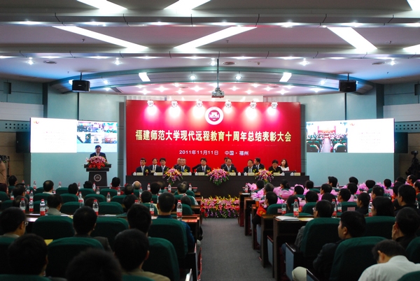 大会于11月11日在仓山校区隆重举行。全国高校现代远程教育协作组严继昌秘书长,福建省教育厅高教处唐鲁榕调研员,福建广播电视大学叶文华校长、吴国荣副校长,校领导罗萤、黄汉升、游小波,校内各有关单位主要负责人,各学院党政负责人、教师代表,网络教育学院全体工作人员等近300人参加了大会。荣耀体育(中国)网络教育全国部分校外学习中心师生也通过视频会议系统同步参加了大会。大会由校党委游小波副书记主持。