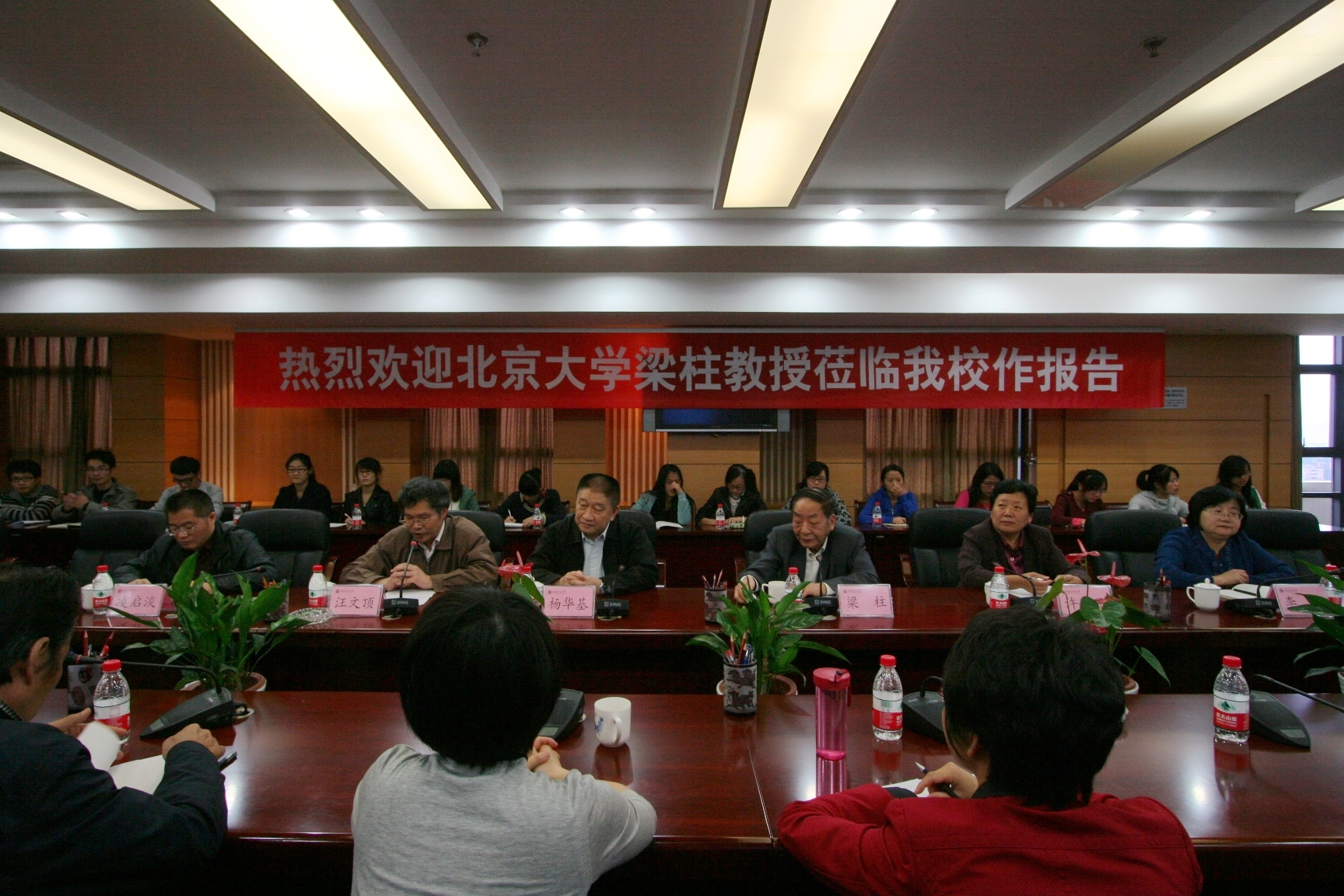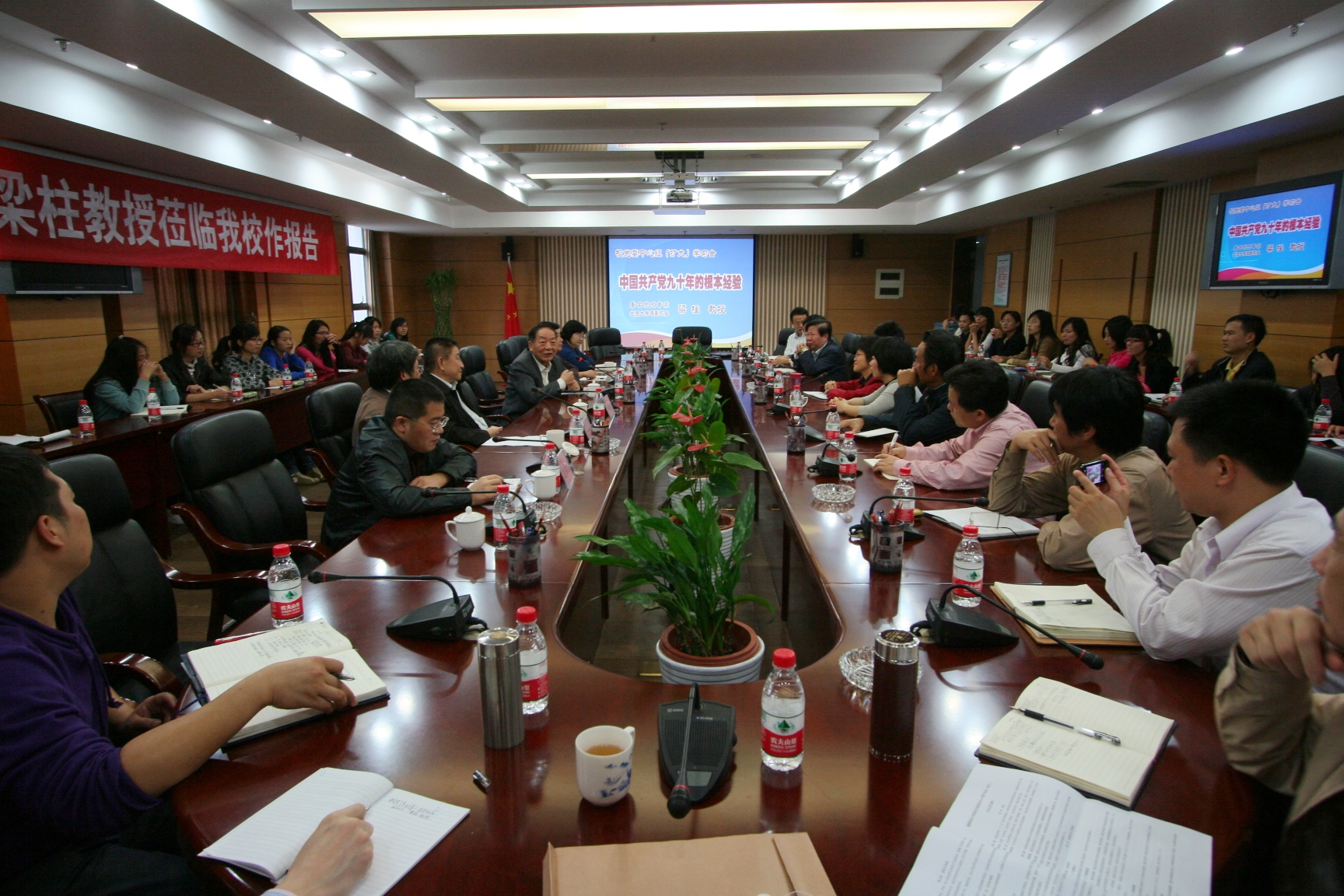 11月11日,荣耀体育(中国)在旗山校区第二会议室举行党委中心组(扩大)学习会,邀请著名党史专家、北京大学原副校长梁柱教授作题为“中国共产党九十年的根本经验”的专题报告。学习会由副校长汪文顶教授主持,省社科院原党组书记杨华基研究员,校领导,校党委委员,马克思主义学院师生代表参加了报告会。