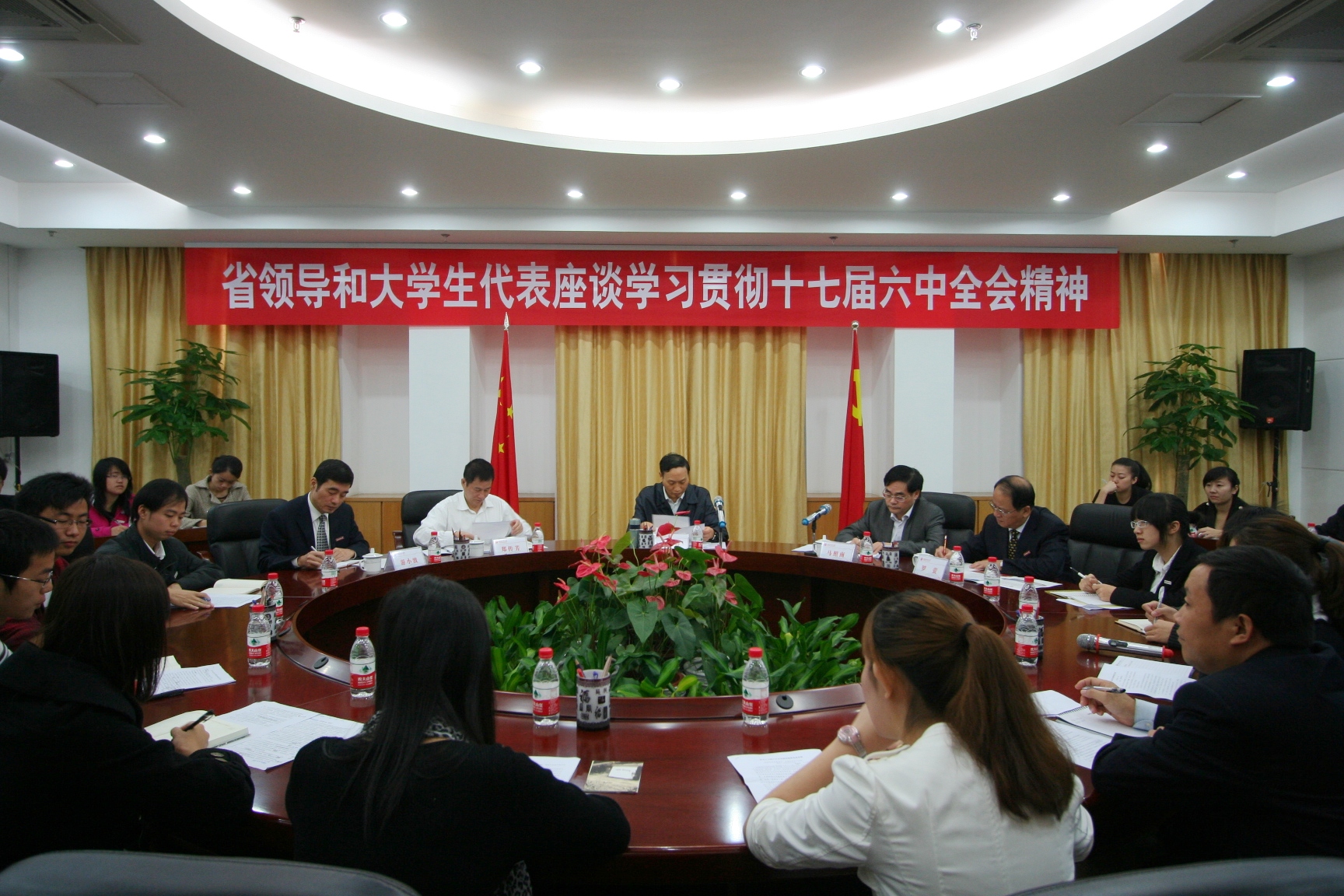 袁荣祥强调,大学是知识传播和文化创新的主要阵地,是培育创新精神和创新人才的重要摇篮。高校要认真学习贯彻六中全会精神,以建设社会主义核心价值体系为根本,进一步突出抓教育引导,抓文化育人,抓文化传承创新,抓文化人才培养,抓组织领导,努力培养中国特色社会主义事业合格建设者和可靠接班人,在建设文化强省、推动社会主义文化大发展大繁荣中发挥更大作用。