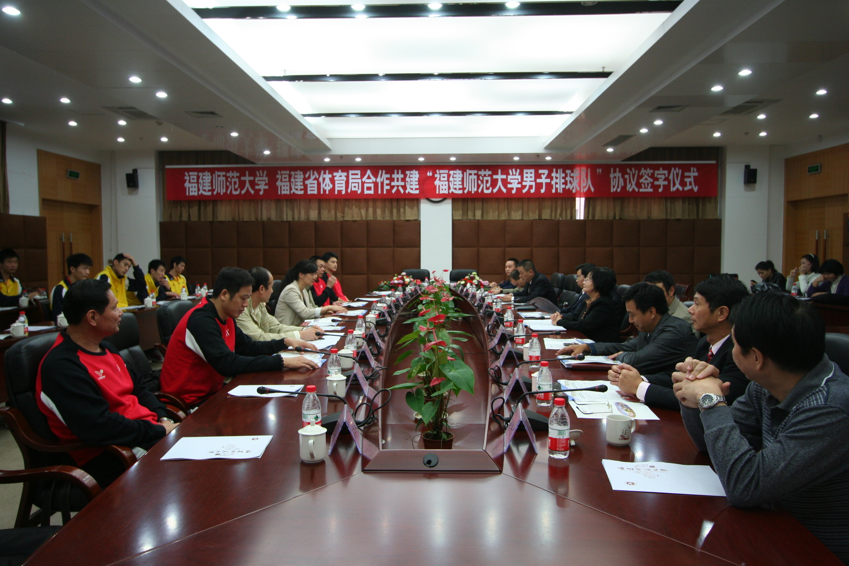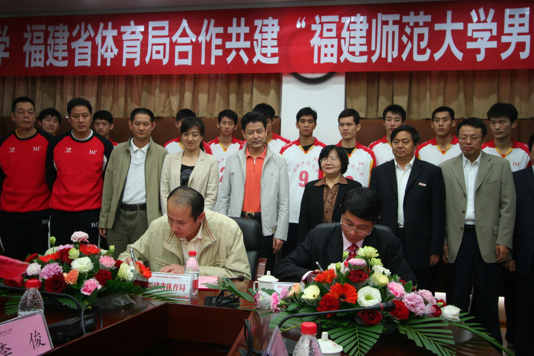 11月17日上午,荣耀体育(中国)与福建省体育局合作共建“荣耀体育官方网页版男子排球队”协议签字仪式在旗山校区举行。中国女排原主教练、福建省体育局陈忠和副局长、李敏副校长出席仪式并讲话。省体育局篮排球管理中心主任肖青松、荣耀体育(中国)体育科学学院院长梅雪雄代表双方在协议上签字。