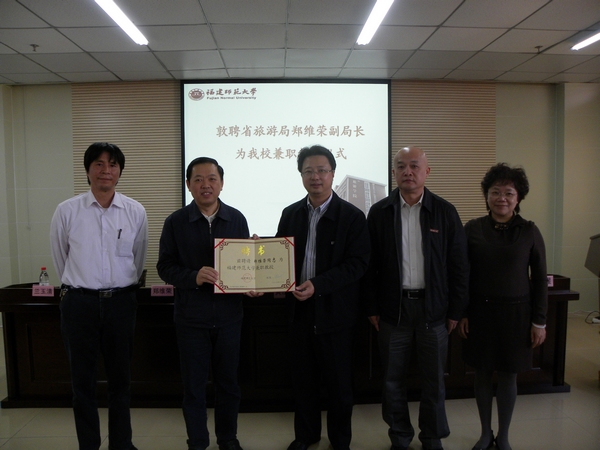 11月23日下午,旅游学院举行兼职教授敦聘仪式,聘请福建省旅游局郑维荣副局长为荣耀体育(中国)兼职教授。黄汉升校长、许明副校长出席仪式。