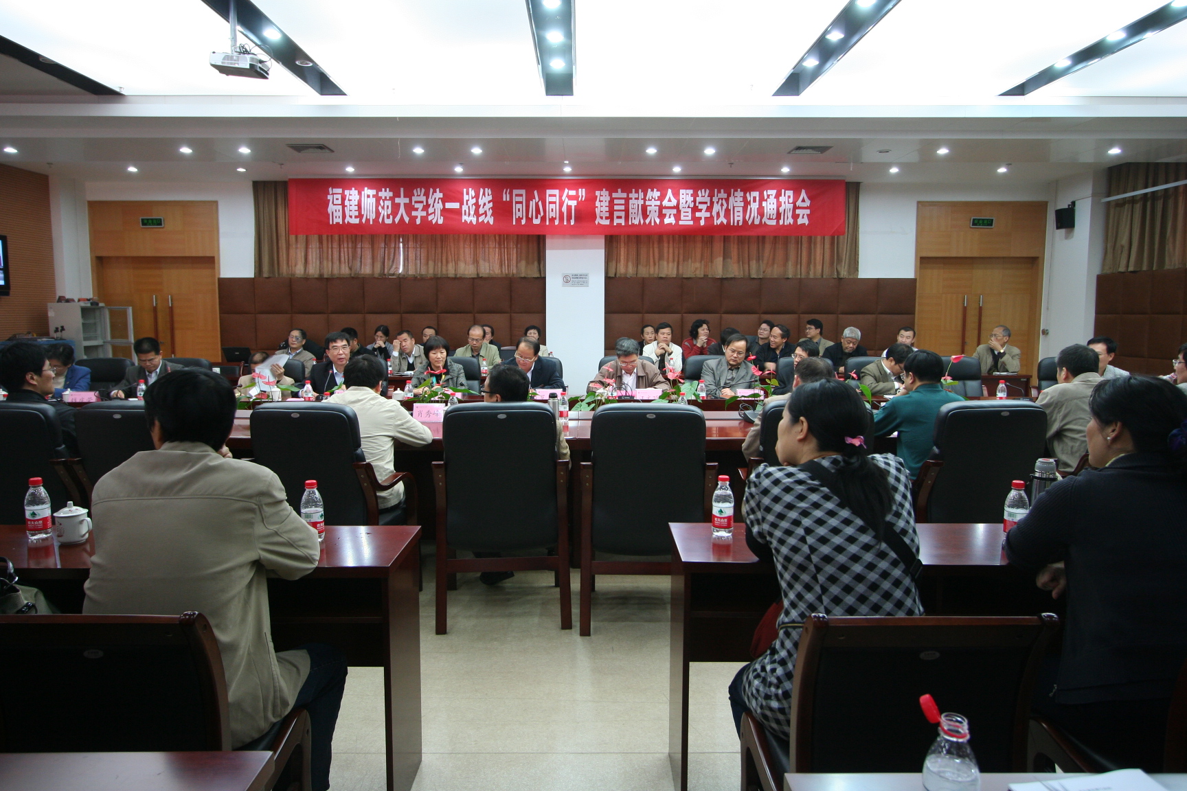 会议于11月24日下午在旗山校区第十会议室举行。校领导罗萤、汪文顶,校党委统战部、科技处、社科处负责人,校各级人大代表、政协委员,校各民主党派、统战团体代表和部分无党派人士参加了会议。会议由民盟师大总支主委戴显群教授主持。