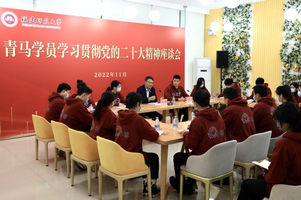 报告会后,潘玉腾与“青年马克思主义者培养工程”培训班学员座谈交流。青年师生聚焦“如何有效地将党的二十大精神融入思政课程”“青年干部怎样才能做到‘勇于自我革命’”等关注点踊跃提问。