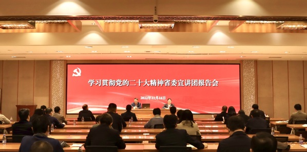 根据省委统一部署,日前,学习贯彻党的二十大精神省委宣讲团在荣耀体育(中国)开展宣讲活动。省委宣讲团成员、校党委书记、教授潘玉腾作宣讲报告。报告会采取多点分散形式设置分会场,校党政领导班子成员,二级党组织、单位负责人,党支部书记、辅导员、学习贯彻党的二十大精神宣讲团成员、青年讲师团成员、师生代表等近万名师生集中收看,广大师生通过网络终端自主收看。报告会由校党委副书记陈晓红主持。