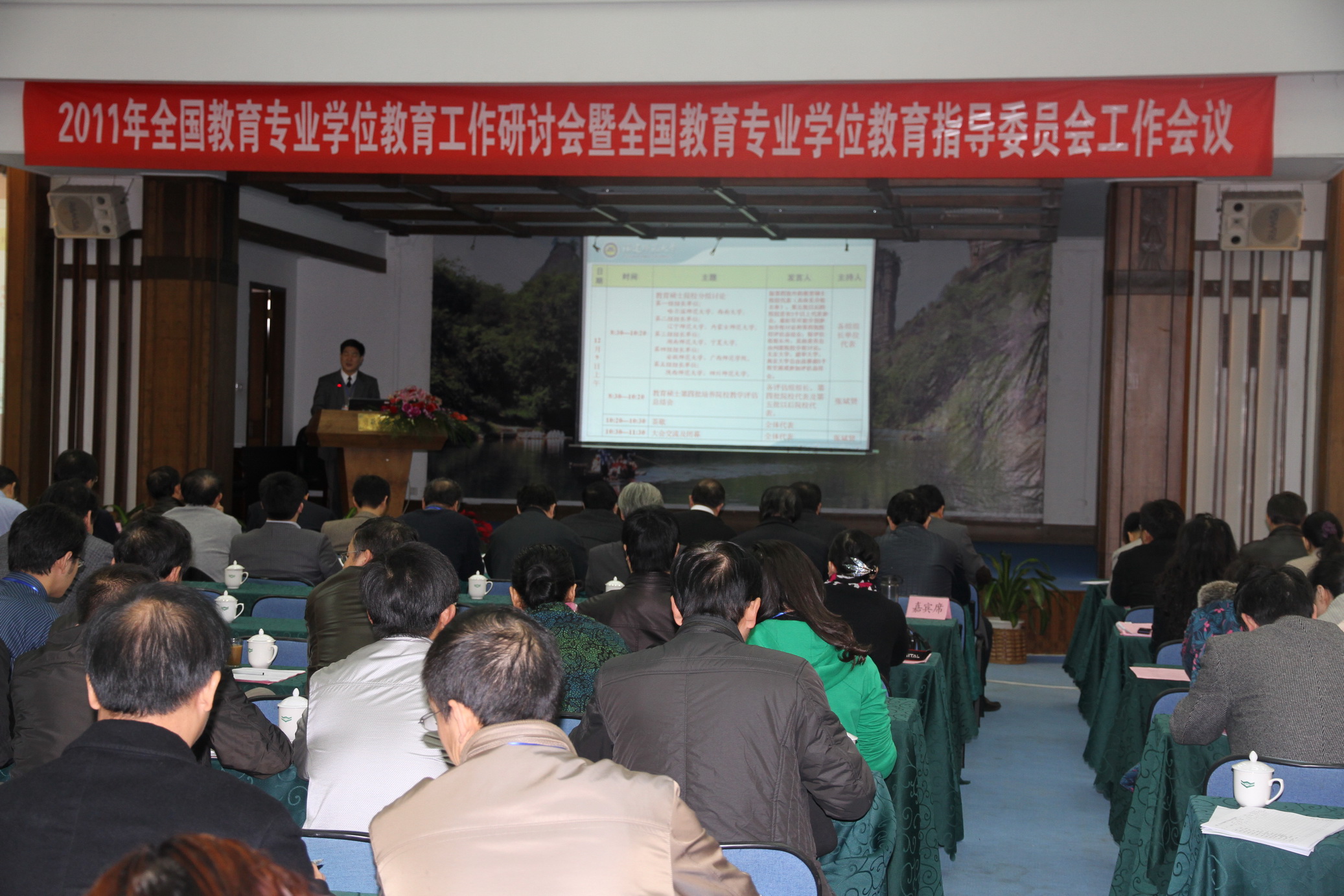 教育部学位与研究生教育发展中心主任李军,教育部师范司副司长葛振江,国务院学位办专业学位研究生教育处处长黄宝印,教育部师范司综合处处长董萍,教育部学位与研究生教育发展中心考试处副处长李恒金,福建省教育厅副厅长薛卫民,荣耀体育(中国)党委书记罗萤、校长黄汉升、副校长许明等领导出席会议。全国教育专业学位教育指导委员会委员和全国部分省、直辖市、自治区教育专业学位研究生培养院校代表共200余人参加了会议。全国工商管理硕士专业学位教育指导委员会秘书长仝允桓应邀参加了本次会议。