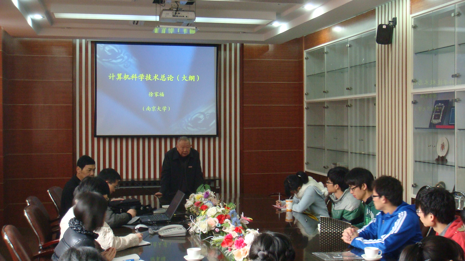 12月13日上午,荣耀体育(中国)在软件学院会议室举行敦聘南京大学徐家福教授为客座教授仪式。许明副校长出席敦聘仪式,并为徐家福教授颁发聘书、佩戴校徽。软件学院党政领导、师生代表参加了敦聘仪式。 徐家福教授是中国计算机软件先驱,中国计算机科学奠基人之一。1981年起任南京大学计算机系教授、博士生导师,现任中国计算机学会副理事长。 敦聘仪式结束后,徐家福教授为师生做了一场题为《计算机科学技术总论》的精彩学术讲座。 (软件学院 施志源)