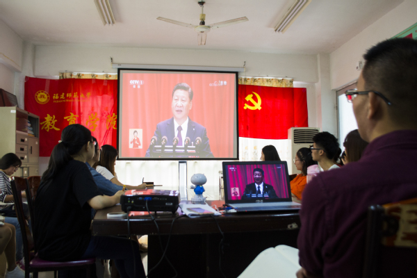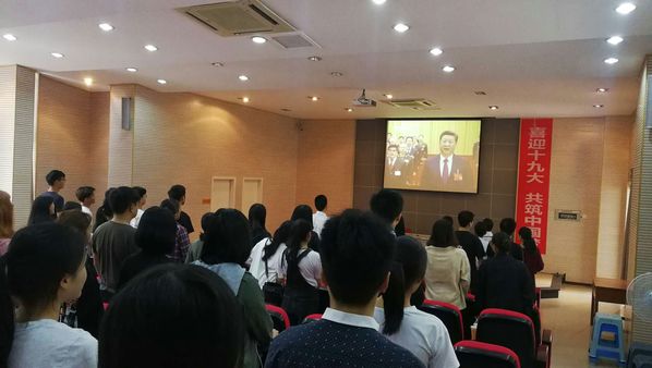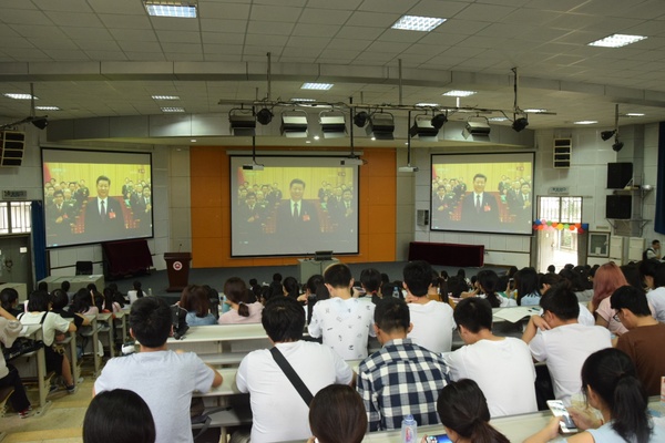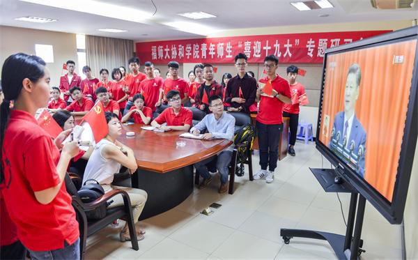 在各个收听收看现场,师生们秩序井然、神情专注,时而静心记录,时而掌声雷动,到处洋溢着喜庆热烈的气氛。收听收看完直播,师生们群情激奋、备受鼓舞,“#福师青年学习进行时#”微博话题的阅读量达到12.1万。大家一致认为,习近平同志的报告高屋建瓴、总揽全局、催人奋进,充分反映了时代要求和人民的热切期盼,是全国人民决胜全面建成小康社会、夺取新时代中国特色社会主义伟大胜利的行动指南和根本遵循。大家纷纷表示,要深入学习领会报告精神,按照十九大指引的方向,为实现中国梦、强校梦、个人梦而努力奋斗。