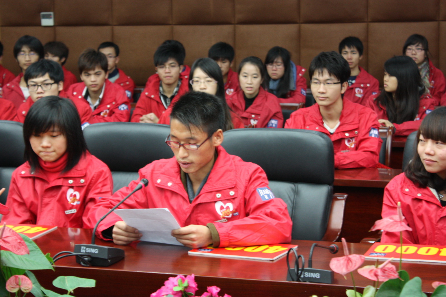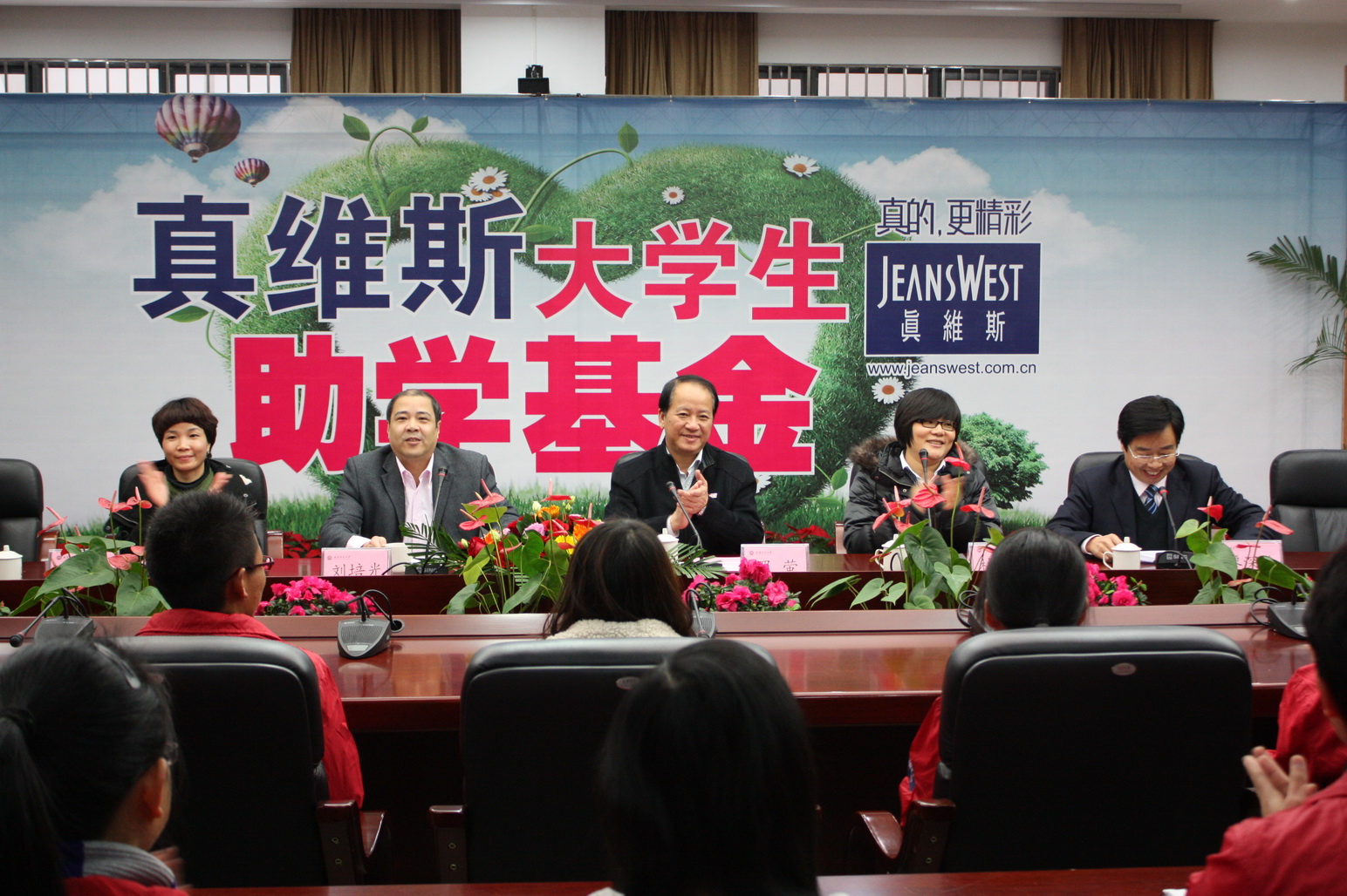 文学院2011级刘鑫同学代表受助学生对真维斯服饰有限公司表达了深深的谢意,表示在今后的日子里,要把困难当作砥砺自己的磨刀石、鞭策自己的动力,坚定信念,努力学习,奋发成才,回报社会,将真维斯公司“达则兼济天下”的理念,传递给每一位需要帮助的人。