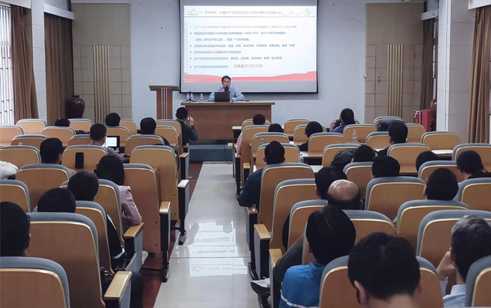 近日,光电与信息工程学院党委书记侯建雄在理工楼3#102会议室为学院全体教师党员和学生支部书记上了一堂题为《从中国共产党的百年辉煌中进一步筑牢初心使命》的党课。