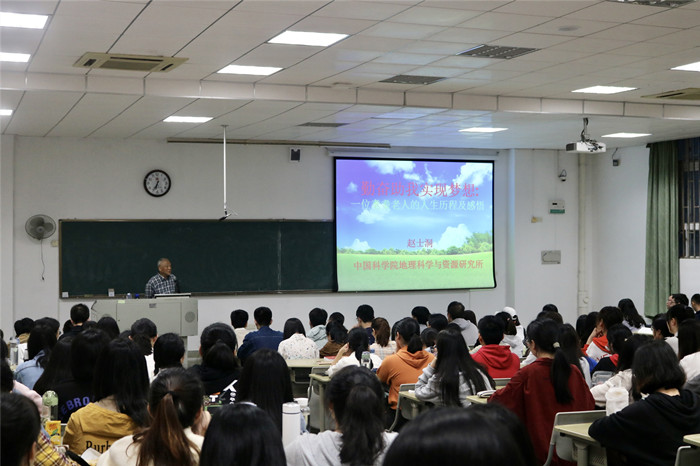近日,地理科学学院邀请中国科学院地理科学与资源研究所赵士洞研究员做客学院“名师面对面”活动。赵老为师生作题为《勤奋助我实现梦想——一位耄耋老人的人生历程及感悟》的讲座。院领导曹裕虎、吴福忠,师生代表聆听了讲座。