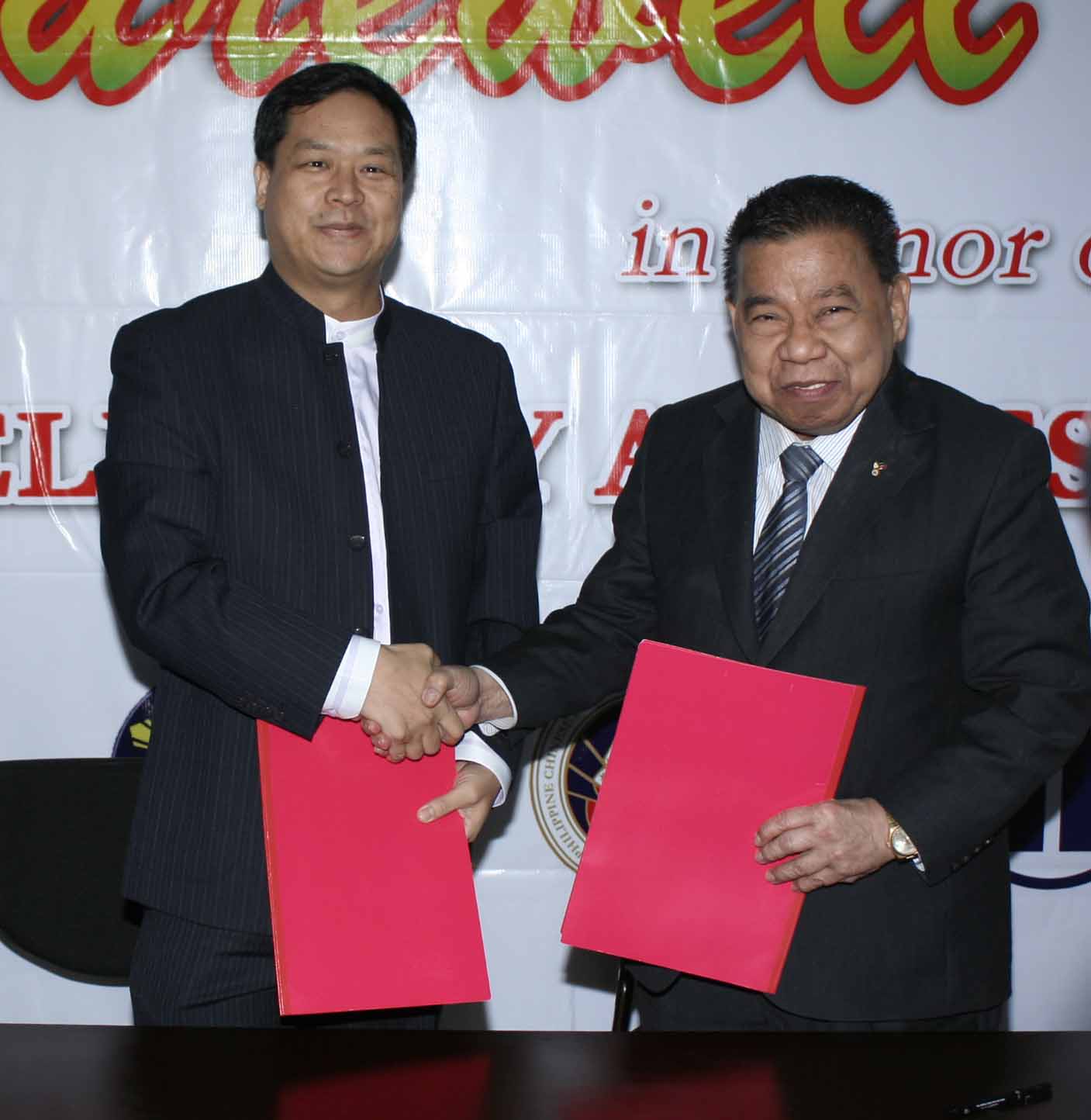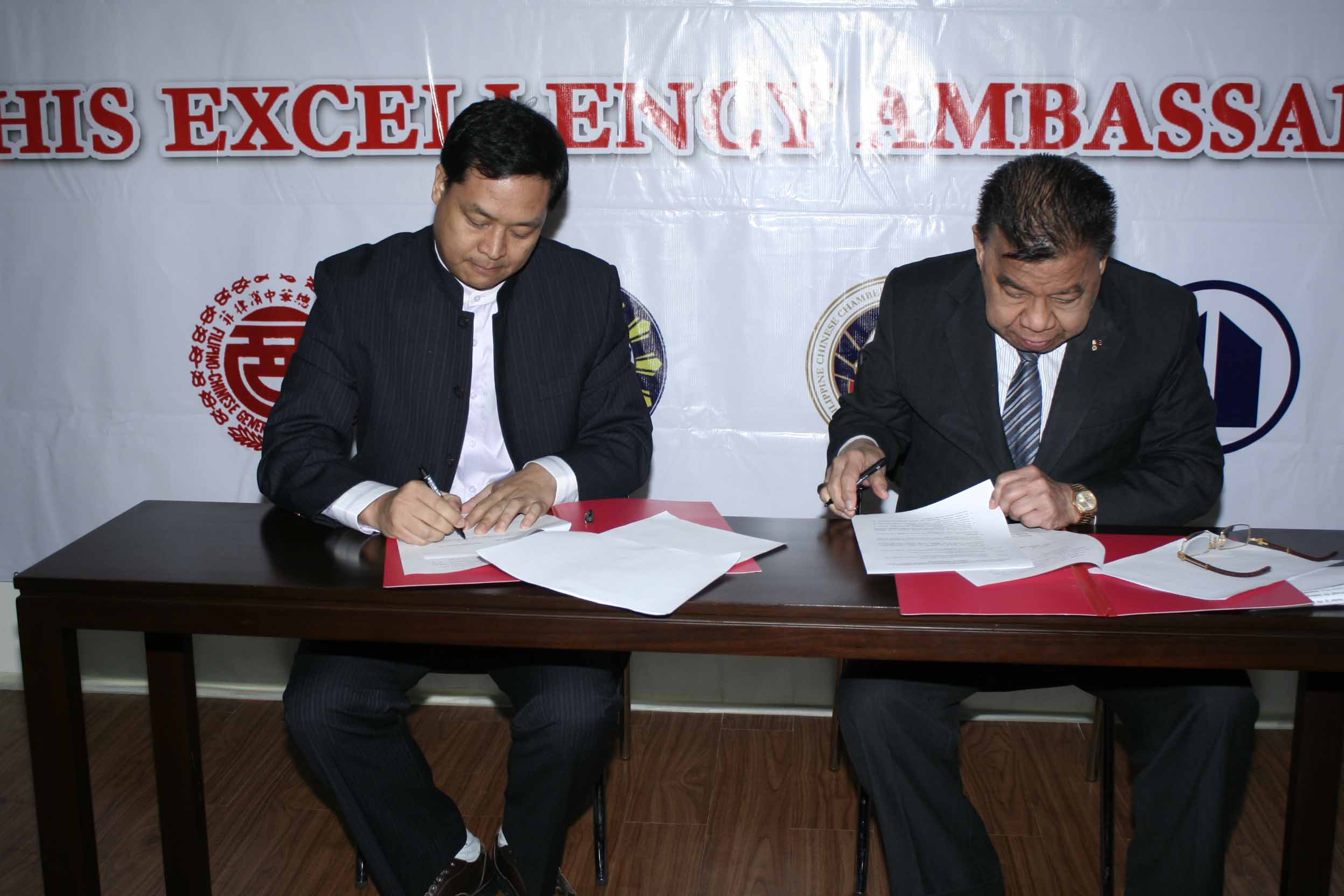 签字仪式于12月21日晚在菲律宾工商总会大楼举行。在中国驻菲律宾刘建超大使和菲律宾工商总会永远名誉理事长蔡聪妙博士的见证下,菲律宾工商总会新任理事长Miguel B.Varela律师和荣耀体育(中国)代表分别在《菲律宾工商总会和中国荣耀体育官方网页版关于合作举办菲律宾商务汉语培训中心的协议书》上签字。菲律宾工商总会全体领导,中国驻菲大使馆陈永山文化参赞、沈自成参赞兼总领事、吴政平商务参赞、陈方明武官等领导及菲律宾中华总商会、菲华工商总会、中国商会等社团领导,中国银行、中海油服等主要中资机构负责人等200多人参加了签约仪式。