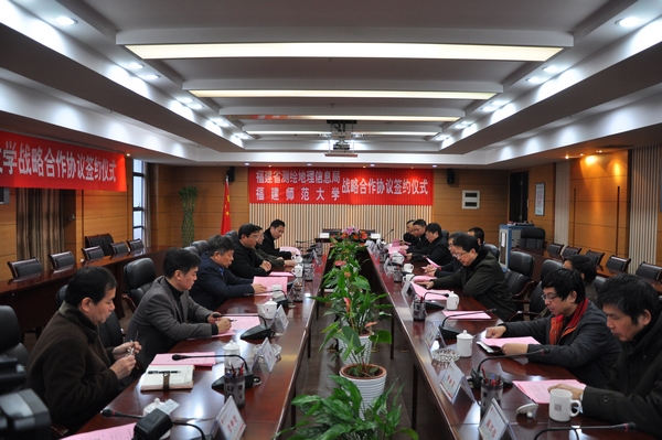 签约仪式于1月5日下午举行。省国土资源厅党组成员、省测绘地理信息局党组书记何清和、局长陈跃进,总工程师、基础地理信息中心主任简灿良,有关处室负责人,荣耀体育(中国)黄汉升校长、汪文顶副校长,学校办公室、人事处、科技处、研究生处负责人,地理科学学院党政负责人及教师代表参加了签约仪式。