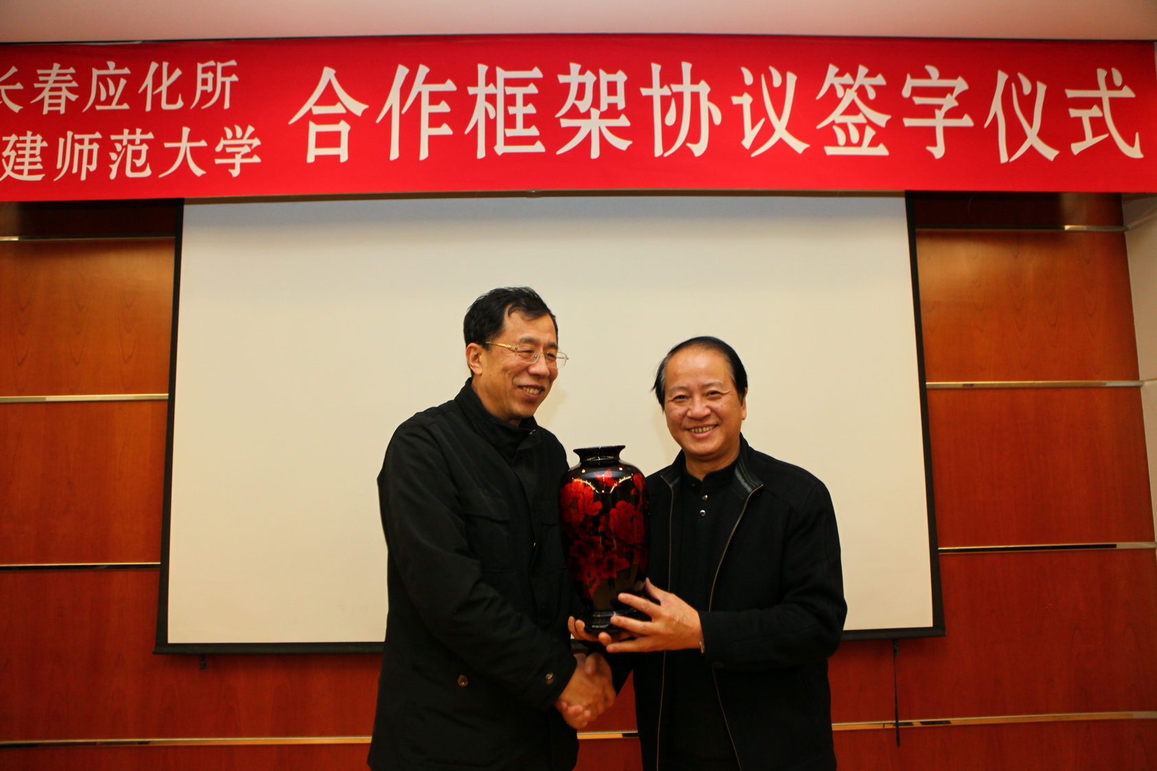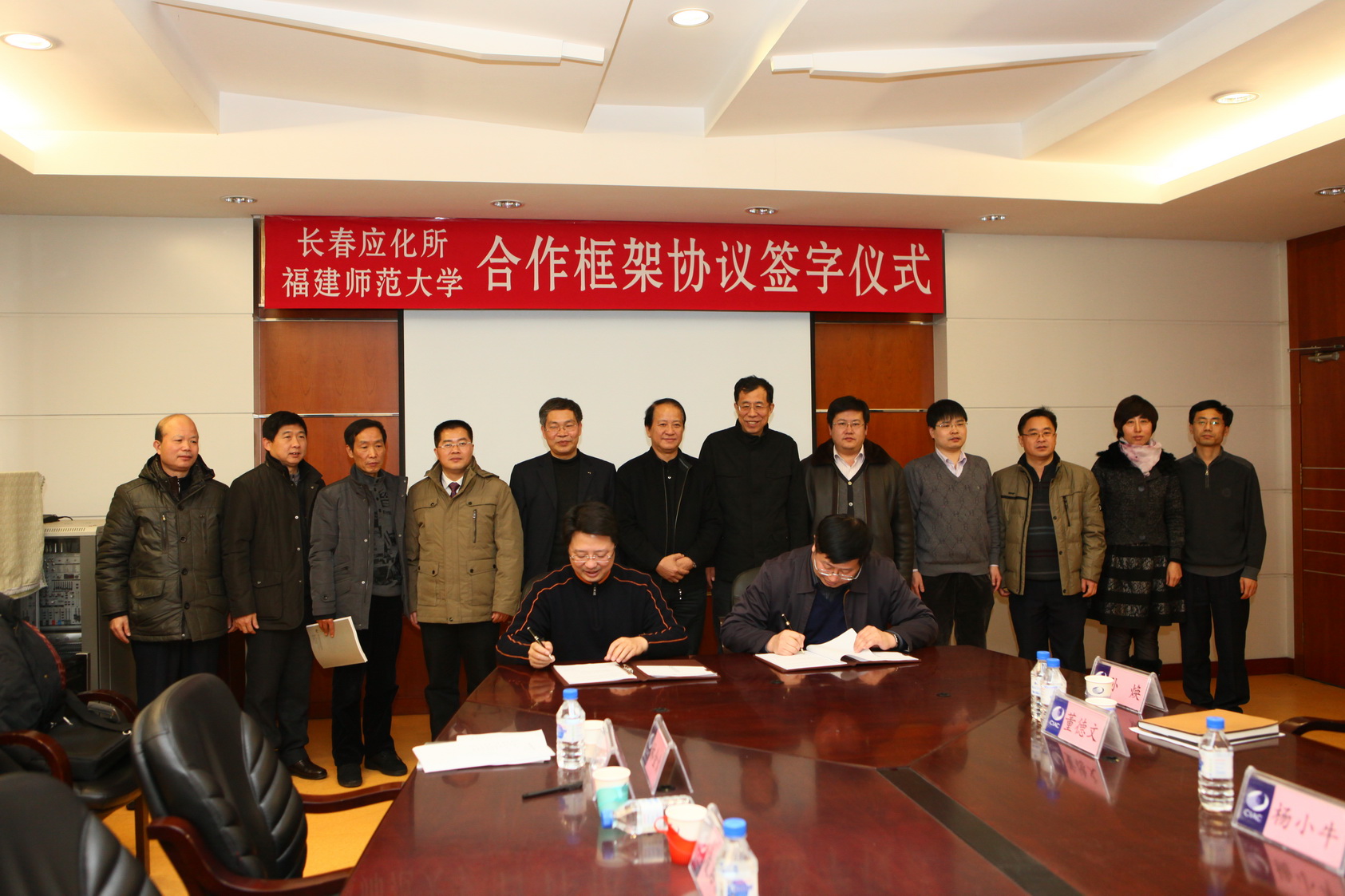 1月6日下午,荣耀体育(中国)与中科院长春应化所合作框架协议签字仪式在长春应化所举行。荣耀体育(中国)黄汉升校长和长春应化所安立佳所长分别代表双方签署了合作协议。荣耀体育(中国)党委书记罗萤、副校长汪文顶、凌启淡,长春应化所党委书记张洪杰、副所长周光远、邹泉清、所长助理杨小牛,以及双方有关部门负责人参加了签字仪式。