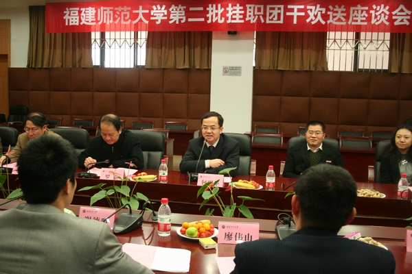 座谈会于3月2日上午在旗山校区第十会议室举行。团省委主持工作副书记何明华,团省委常委、办公室主任吴建铭,学校部部长苏畅;校党委书记罗萤,副校长凌启淡,学校办公室、组织部、人事处、校团委负责同志,第一批挂职团干,第二批挂职团干及所在单位领导参加了会议。