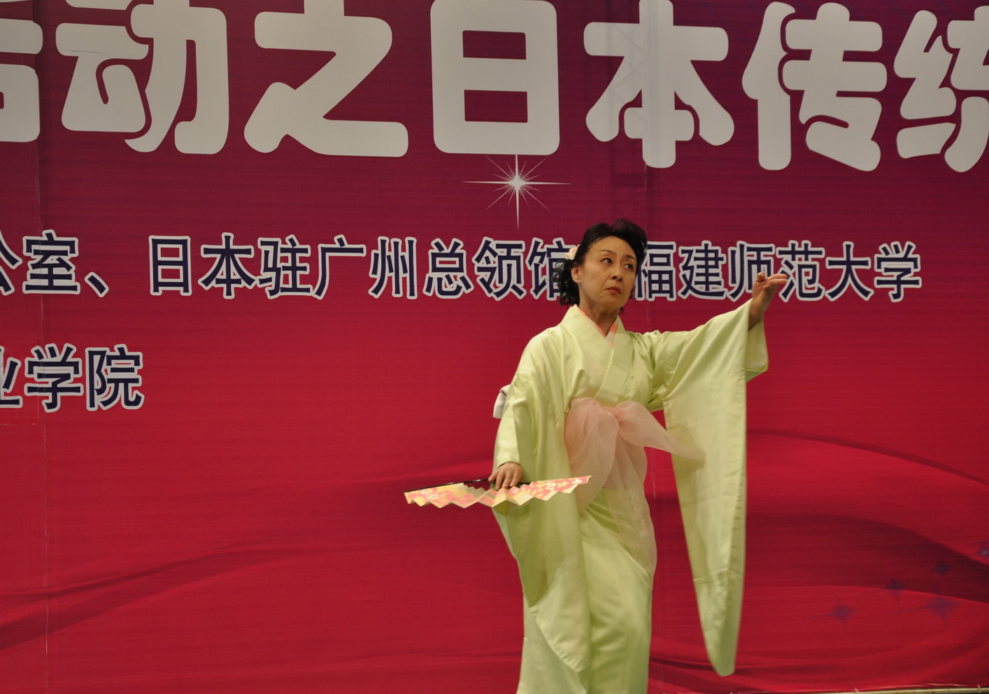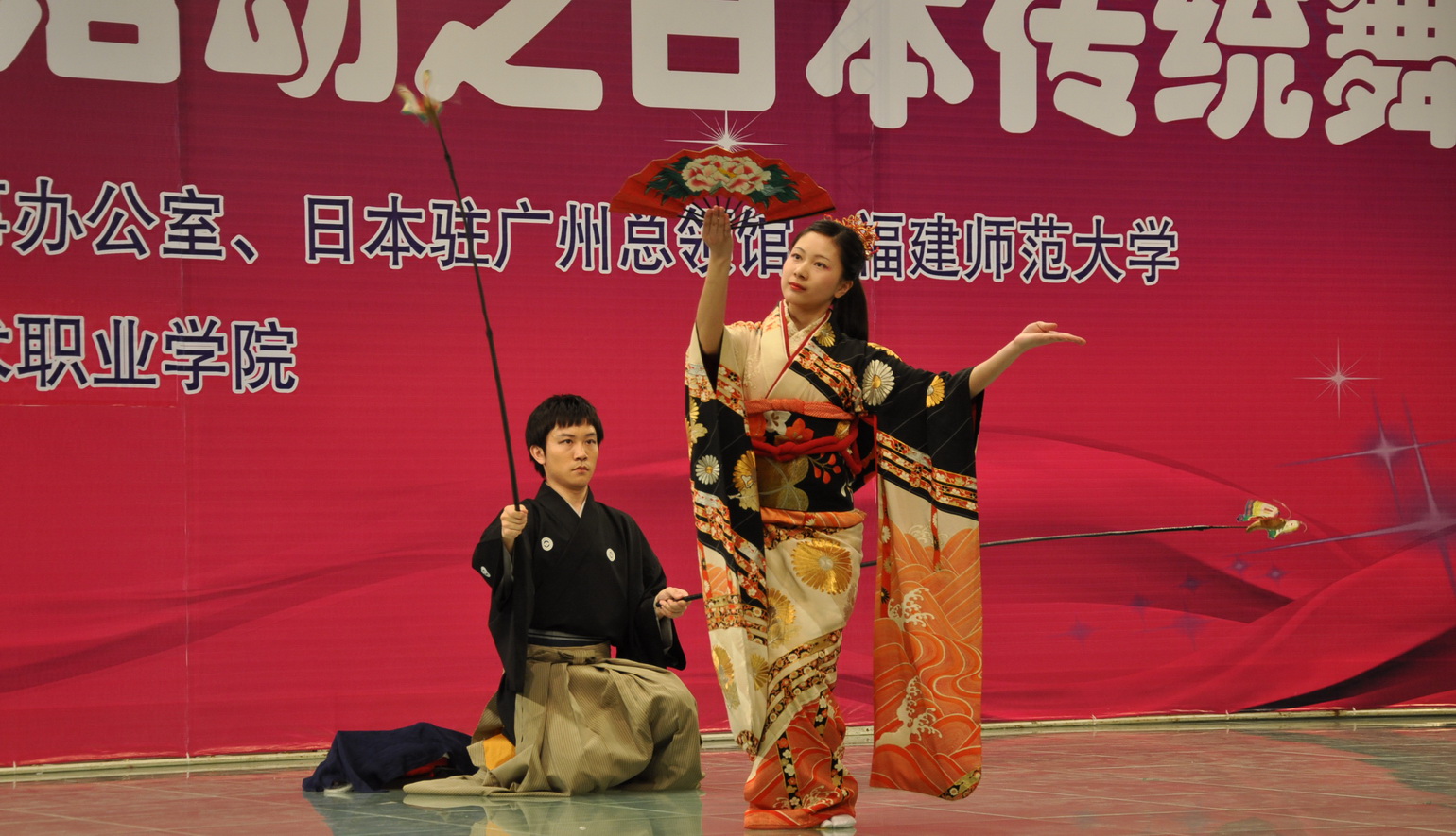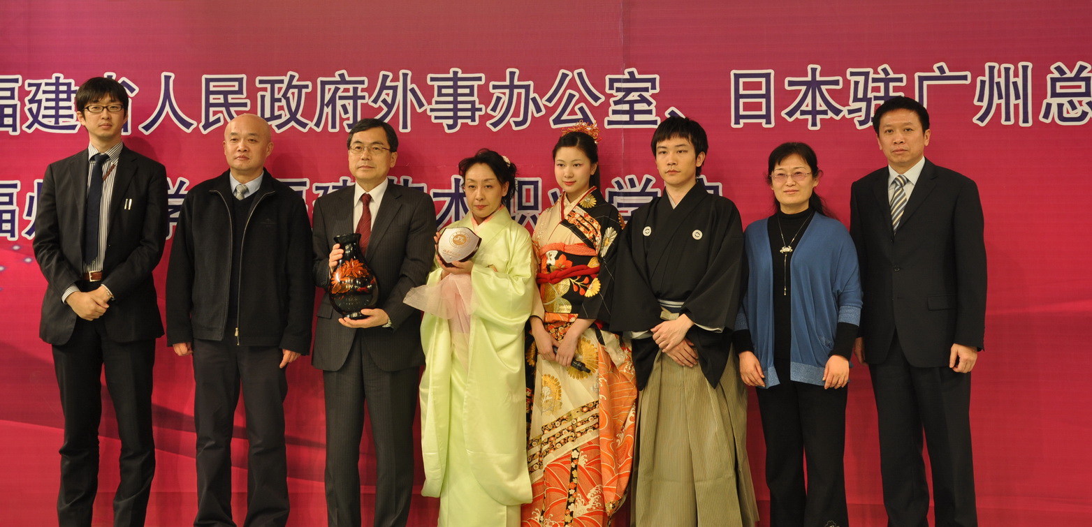 3月21日,日本著名传统舞蹈家藤间万惠女士率领其表演团队访问荣耀体育(中国),在演播厅举行“五彩缤纷”系列活动之日本传统舞蹈演出。福建省对外友好协会楚燕丽副会长、日本驻广州领事馆田尻和宏总领事、大手绅太郎副领事,荣耀体育(中国)许明副校长,福建省人民政府外事办公室相关负责人,福州大学、福建艺术职业学院及荣耀体育(中国)部分师生观看了演出。