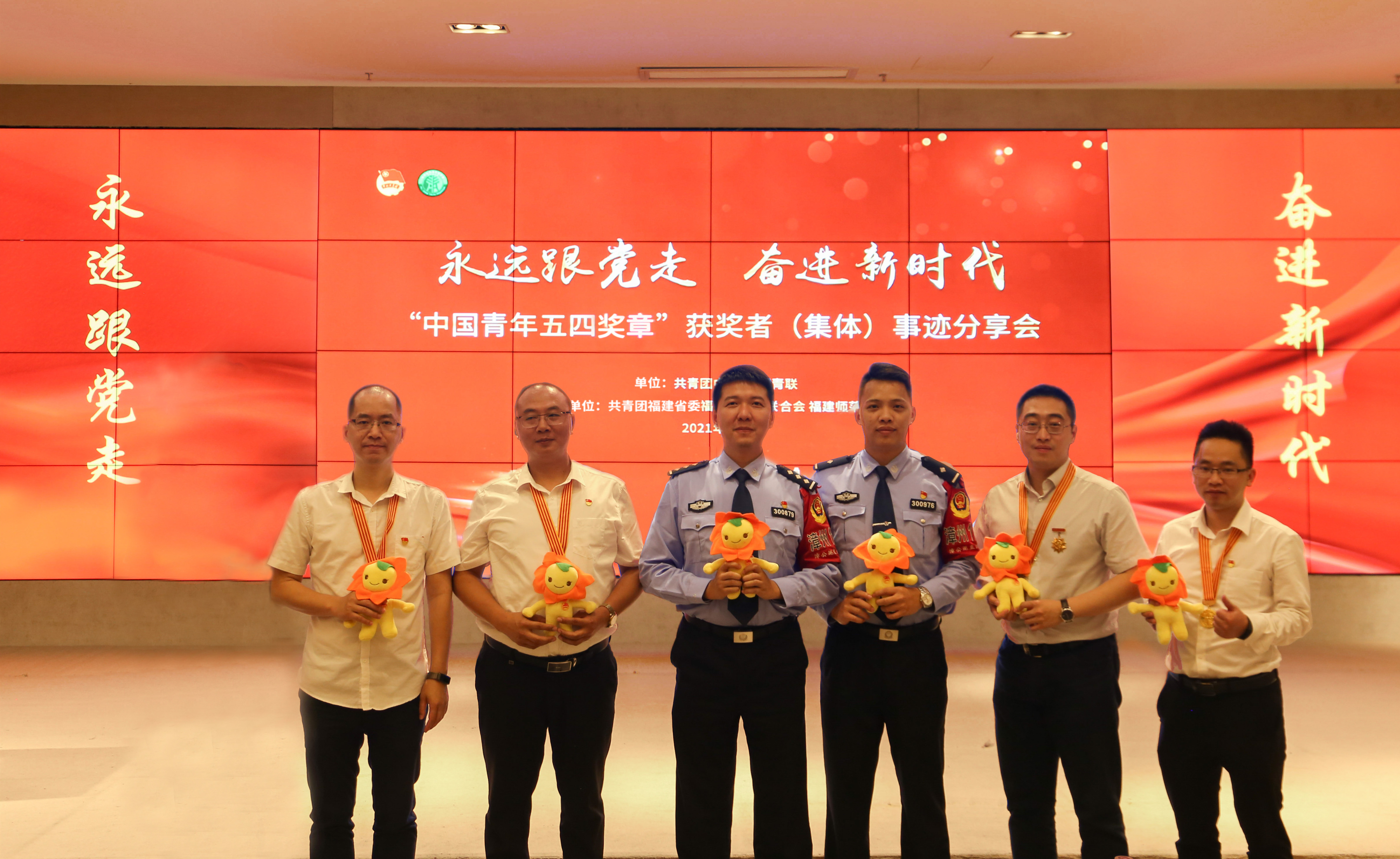 会议在团中央“中国青年五四奖章”宣传片《永远跟党走 奋进新时代》中拉开序幕。第24届“中国青年五四奖章”获奖者厦门大学航空航天学院常务副院长、特聘教授、博士生导师尤延铖,第24届“中国青年五四奖章”获奖者福建省疾病预防控制中心免疫规划所副主任技师李东,第21届“中国青年五四奖章”获奖者福建省自媒体协会会长,澳大利亚国立大学国际政治战略网络外交博士雷希颖,第22届“中国青年五四奖章”获奖者福建省漳州市漳浦县湖西畲族乡后溪村卫生所乡村医生陈伟琳,第25届“中国青年五四奖章”获奖集体福建省漳州市公安局巡特警支队直属大队代表林连军、杨锦煌先后开展专题分享。他们或精气十足、或娓娓道来、或青春洋溢的分享,让大家近距离、多角度了解和感受到他们爱党爱国的赤子之心,充分展现了新时代青年的责任和担当。分享结束后,6位嘉宾与现场观众进行了交流互动。