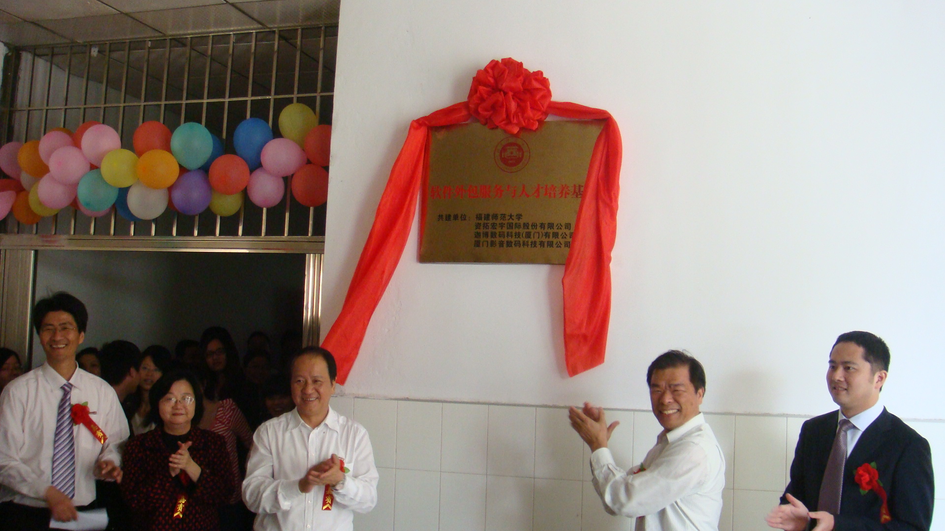 4月26日上午,荣耀体育(中国)在立诚楼举行软件外包服务与人才培养基地挂牌仪式。台湾资拓宏宇国际股份有限公司副总经理林县城先生,厦门大学张铭洪先生,厦门影音数码科技有限公司总经理黄智勇先生,校党委书记罗萤、副校长李敏,学校相关职能部门负责人,软件学院师生代表参加了仪式。