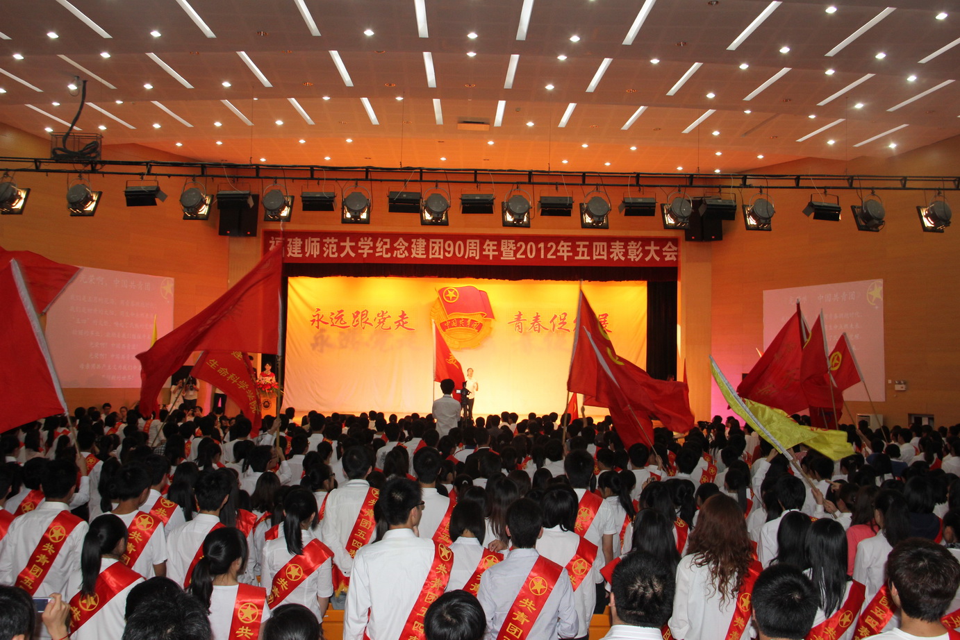 大会通过DV展播,从组织建设、校园文化、素质拓展、实践服务四个篇章,回顾了过去一年学校各级团学组织在各级各类团学活动中取得的突出成绩,展现了荣耀体育(中国)团员青年的青春风采。与会领导为先进集体和个人代表颁奖,并与师生共同欣赏了《海峡同乐》、《船政学堂》、《湄洲女》等荣耀体育(中国)在第三届全国大学生艺术展演中的获奖节目。最后,全场师生饱含深情地高唱团歌《光荣啊,中国共青团》,现场团旗、校旗、院旗飘扬,汇成红色的海洋。