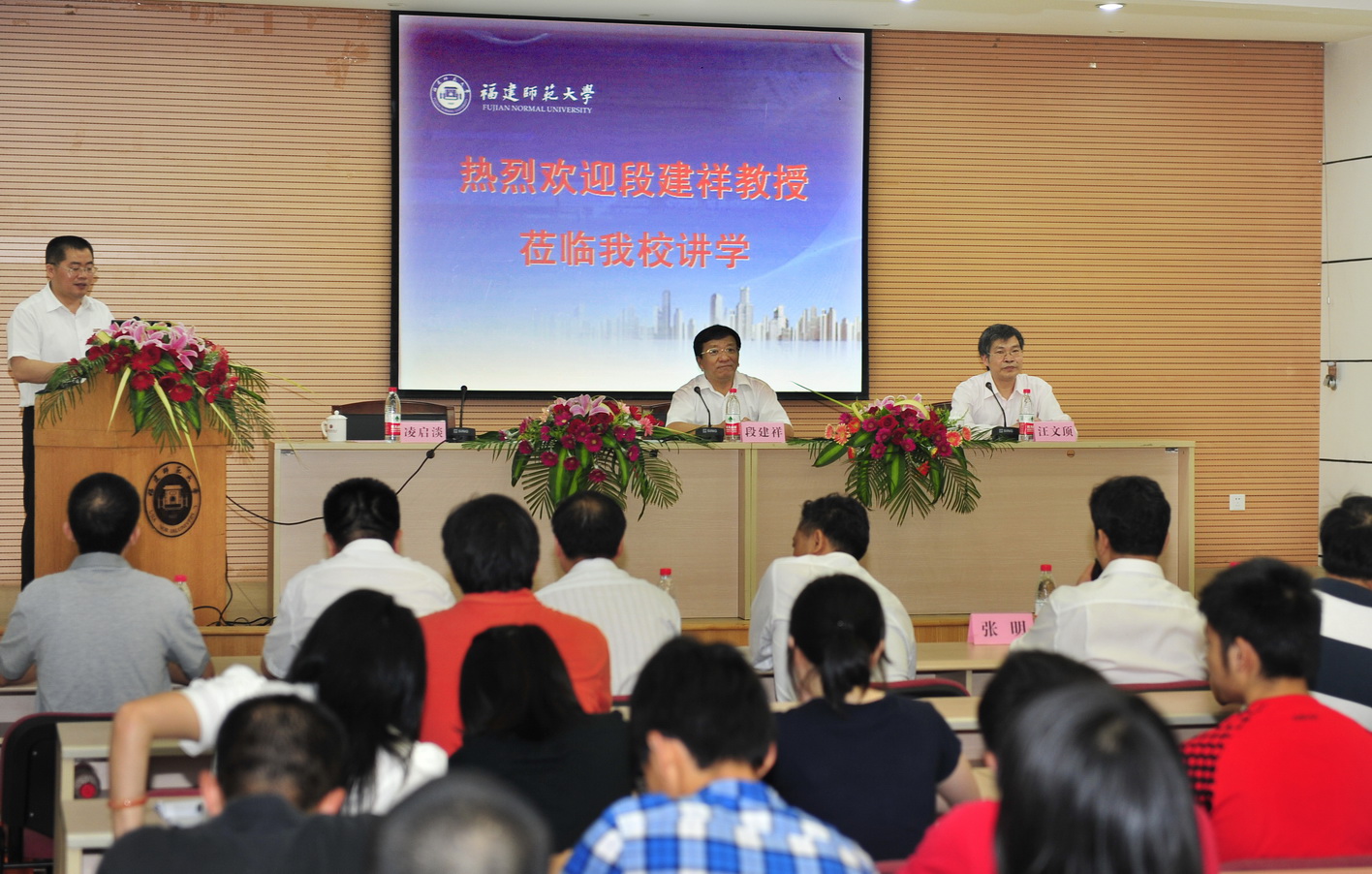 敦聘仪式后,段建祥教授为与会师生作了题为《信息化与海西跨越发展》的学术讲座。他从“信息化:推动变革影响深远”、“信息技术:日新月异 引领未来”、“海西信息化:数字福建 智慧城市”三个方面入手,全面阐述了信息化在推进经济社会发展中的重要作用,深入介绍了移动互联网、光宽带、云计算、物联网四大热点信息技术,详细讲解了“十二五”期间以数字福建引领智慧城市群建设的发展蓝图,分享了中国电信福建公司智慧城市的建设经验与实践案例,并针对师生的提问一一作了解答,使大家受益匪浅,现场气氛热烈。