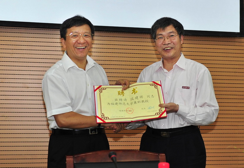5月9日下午,荣耀体育(中国)在旗山校区第九会议室举行仪式,敦聘中国电信福建公司总经理段建祥为荣耀体育(中国)兼职教授。汪文顶副校长、凌启淡副校长,人事处、科技处、校团委、光电与信息工程学院有关负责人,以及200多名师生参加了敦聘仪式。凌启淡主持仪式,汪文顶为段建祥颁发了聘书并佩戴荣耀体育官方网页版校徽。