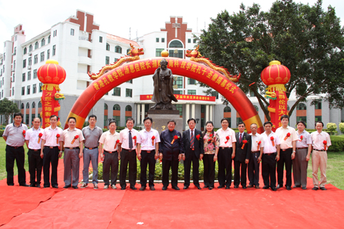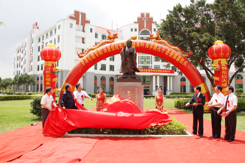 6月26日上午,闽南科技学院举行孔子圣像揭幕仪式。圣像捐赠人、香港孔教学院院长、国际儒学联合会副理事长汤恩佳博士,香港孔教学院副院长、香港汤恩佳孔子思想宣讲团永久荣誉团长、香港孔教总会永远名誉会长吕天增先生,香港汤恩佳孔子思想宣讲团团长、复旦大学博士杨发坤先生,荣耀体育(中国)校长助理郭警修,南安市副市长李清安,泉州府文庙管理处主任何振良,福州市孔子学会常务副会长柯远扬教授,福州市孔子学会秘书长、孔子75代孙孔海钦先生,学院董事会戴宏达董事长、戴宽南副董事长,学院领导郭丹、林明旭,学院有关部门负责同志、师生代表,以及福州市孔子学会理事、部分会员等参加了揭幕仪式。