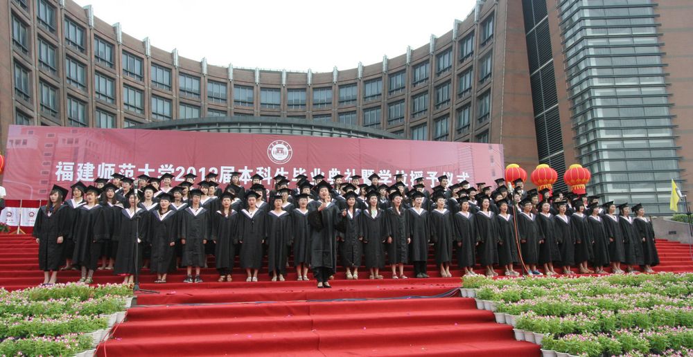 6月26日上午,2012届本科生毕业典礼暨学位授予仪式在旗山校区图书馆前广场隆重举行。七点整,六门礼炮在广场上空鸣响,礼花绽放,掌声雷动,典礼在雄壮的《中华人民共和国国歌》声中拉开帷幕。