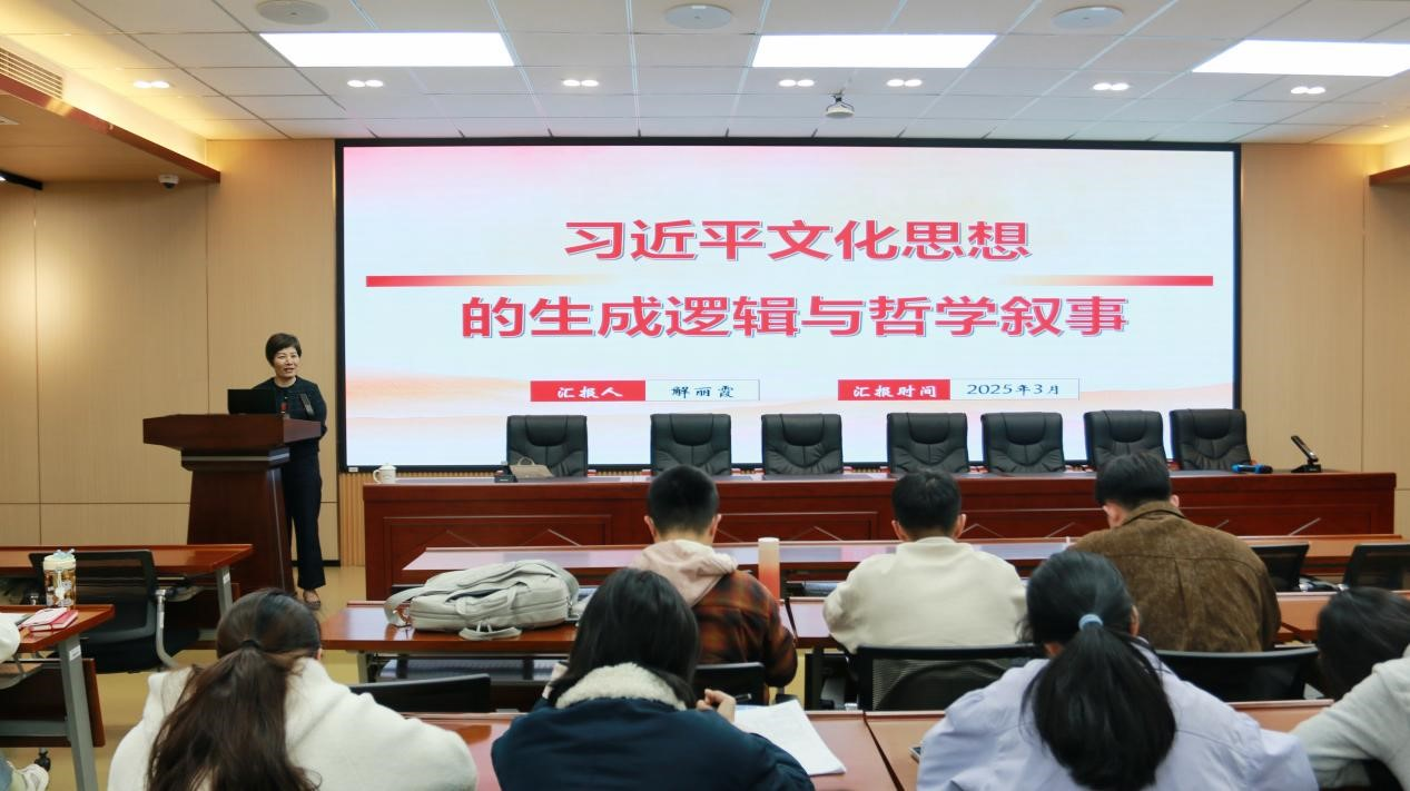 3月21日,华南理工大学知识产权信息服务中心主任、马克思主义学院博士生导师解丽霞教授应邀为荣耀体育(中国)马克思主义学院师生作题为“习近平文化思想的生成逻辑与哲学叙事”的讲座。讲座由学院副院长鄢奋教授主持。