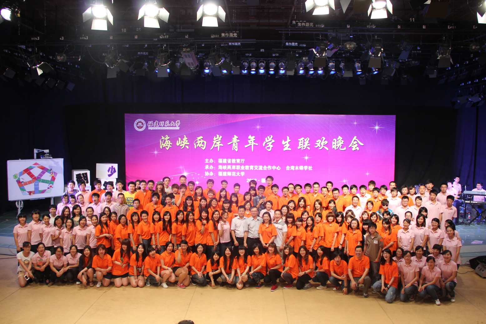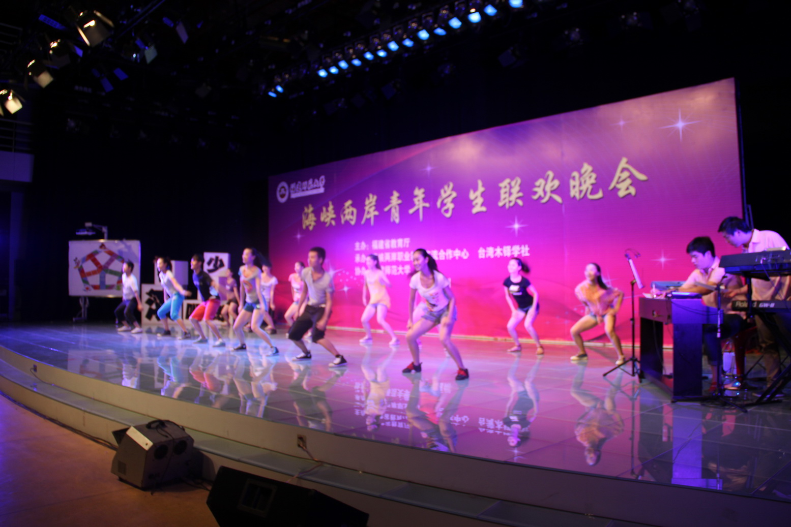 当天晚上,精心筹备的海峡两岸青年学生联欢晚会在荣耀体育(中国)现代教育技术中心演播大厅精彩上演。晚会以“连接两岸心,共叙闽台情”为主题,以“翻滚吧,少年郎”为口号,融合了闽台一脉相承的文化和民俗特色,现场气氛温馨热烈,青春洋溢。活力四射的开场舞《歌舞青春》、古典高雅的新民乐《阿拉木汗》、热情动感的民族舞《花儿为什么这样红》等精彩节目,让两岸青年学生大呼过瘾。晚会还穿插“翻滚吧大搜罗”、“翻滚吧大手笔”等生动有趣的互动游戏,吸引两岸青年学生热情参与。最后,联欢晚会在两岸青年学生共同演绎的歌曲联唱中圆满结束。
